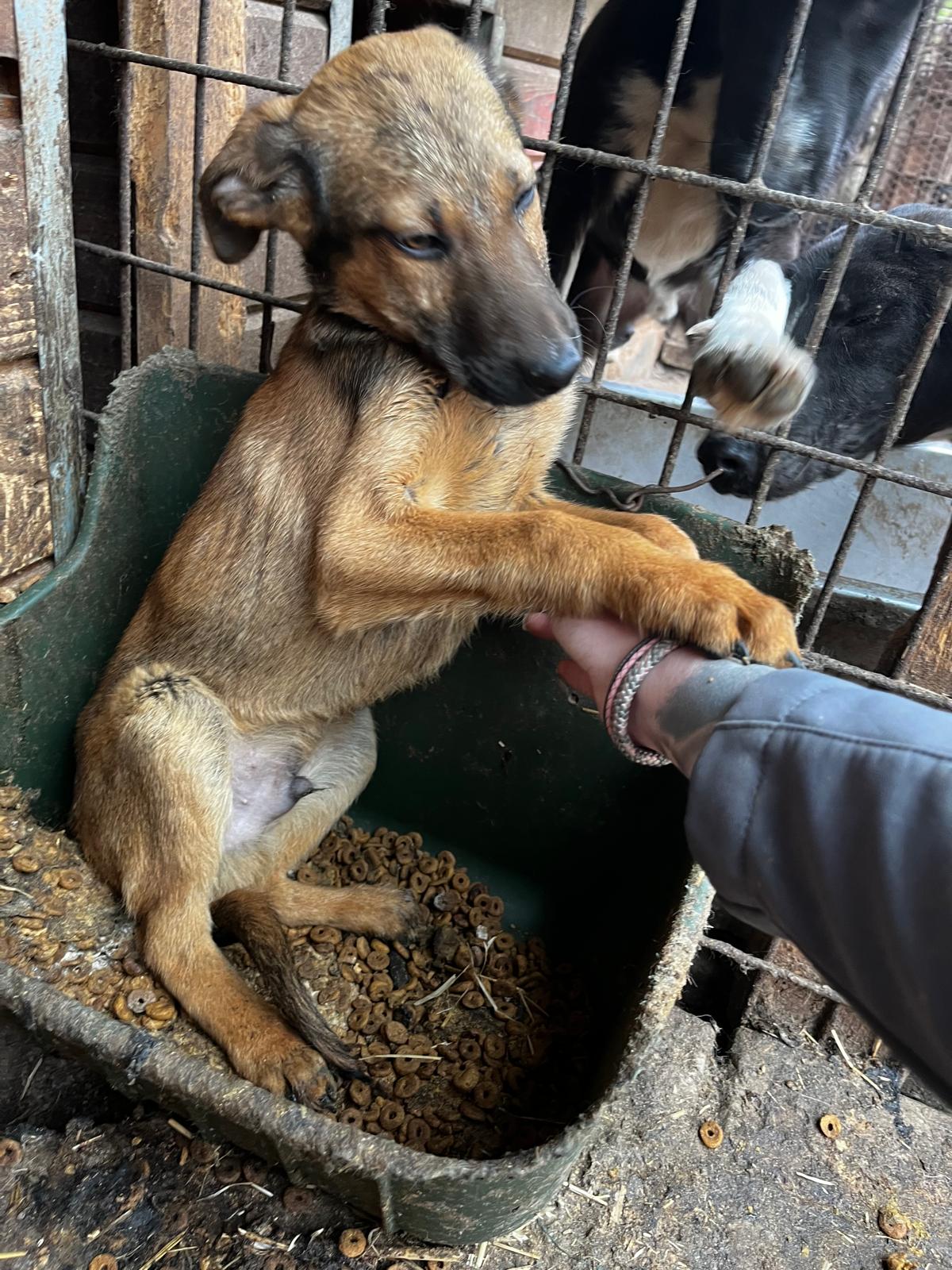 Ein kleiner Schubs in die richtige Richtung und schon war ESPOIR etwas aufgetaut, doch von sich aus kam er nicht mehr groß zu uns. Er beobachtete gern neugierig aus seinem Futtertrog, was wir so treiben, braucht aber Unterstützung bei der Kontaktaufnahme. Wir konnten ihn noch problemlos hochnehmen, doch es wird höchste Zeit, dass er Bucov verlässt, sonst ist sein Schicksal besiegelt.