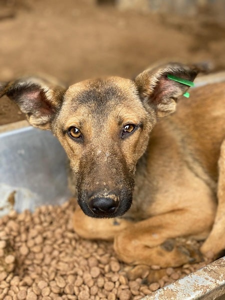 Leider hat sich auch für ESPOIR in den letzten Monaten nichts verändert. Er sitzt immer noch in seinem kleinen Kennel und beobachtete uns neugierig aus seinem Futtertrog heraus. Von alleine kam er nicht auf uns zu. Als wir uns ESPOIR zuwandten, konnten wir ihn streicheln und er taute dabei schnell auf. Wir hoffen für ESPOIR, dass sich schnell eine Ausreisemöglichkeit für ihn findet.