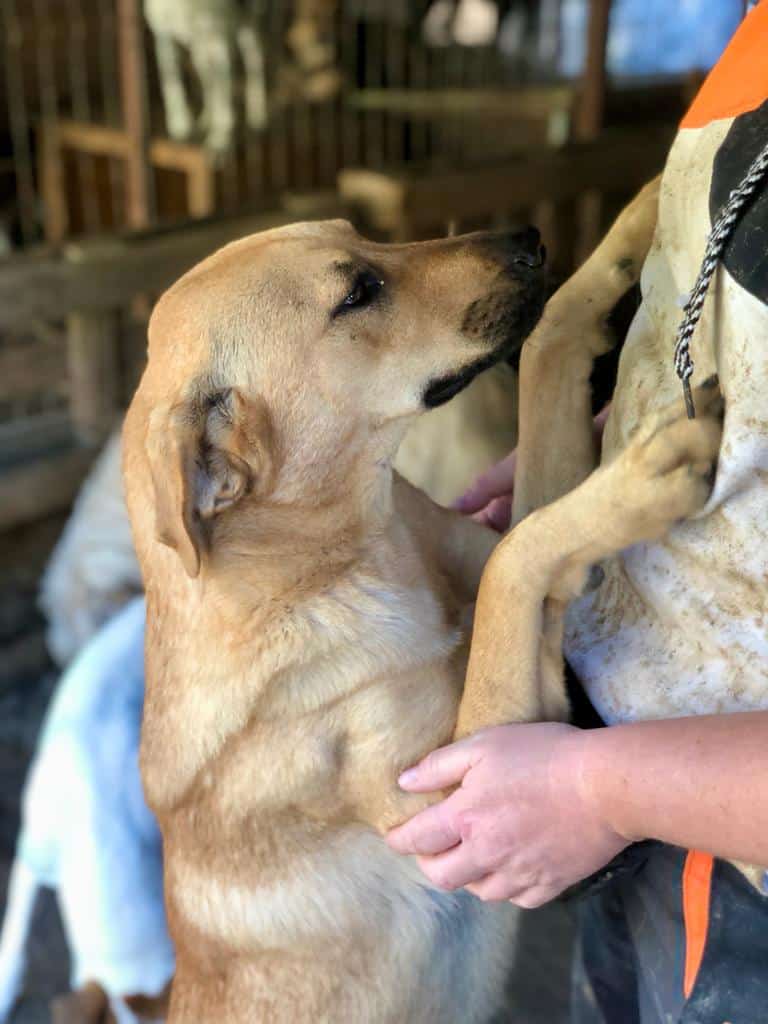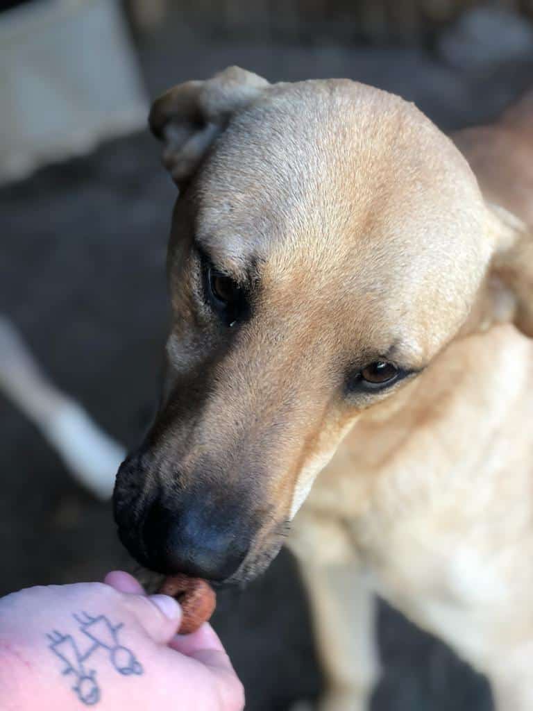 Update 04/24: Der so menschenbezogene Rüde Esra hat unsere Herzen berührt. Esra ist absolut freundlich, anhänglich, sehr verschmust und verträglich. Bei unserem kurzen Besuch, schmiegt sich Esra ganz eng an die Volontären um für einen Moment, die Sorgen und den Shelterstress zu entfliehen. Esra, eine treue Hundeseele der seine Menschen sucht.