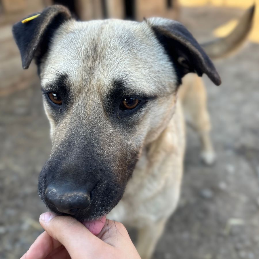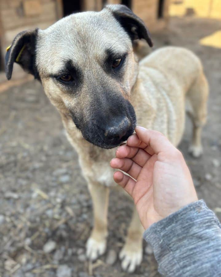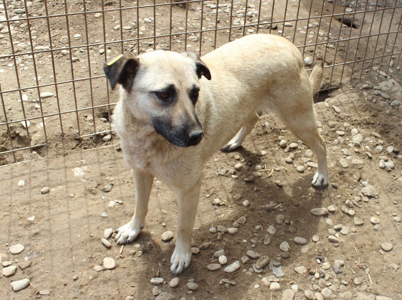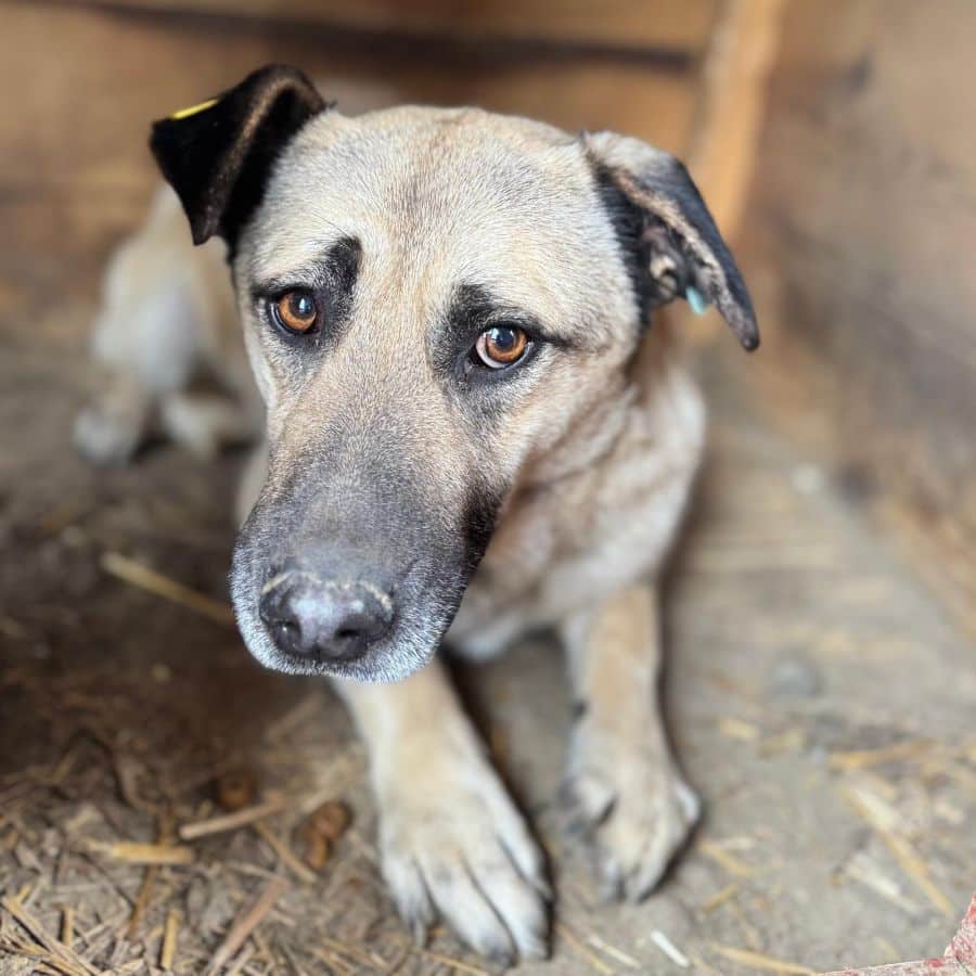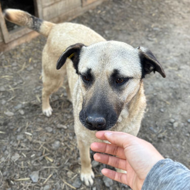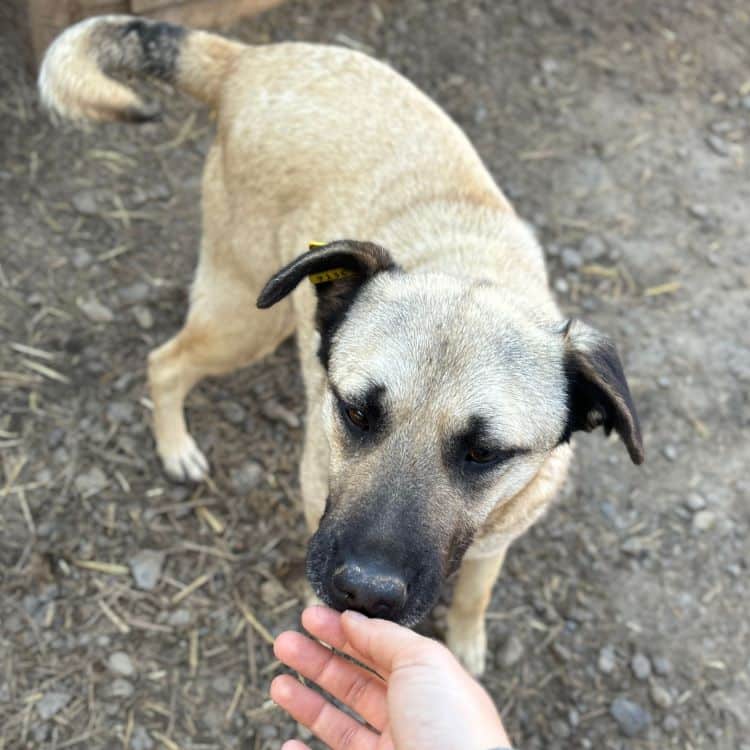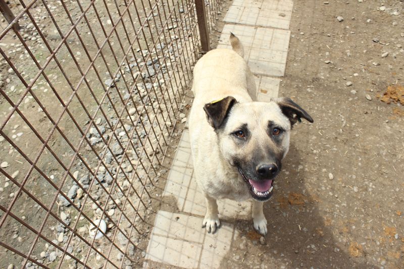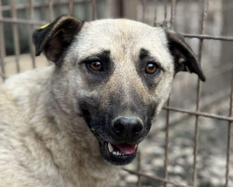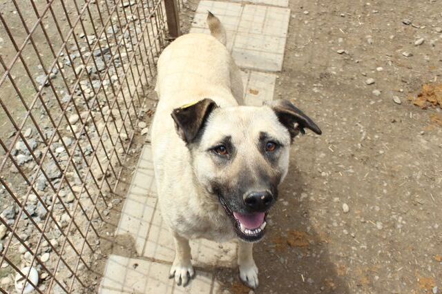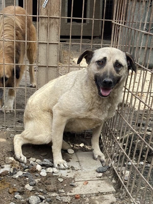 Bei unserem Besuch in dem Tierheim in Bucov/Rumänien war die helle Hündin ESTELLE mit den schwarzen Ohren etwas aufgeregt. Irgendwie schien sie spüren, dass wir eine Chance im Gepäck haben, traute dem Braten aber nicht so recht. Sie entschied sich dafür, die mitgebrachten Leckerchen und die Streicheleinheiten anzunehmen. Sie blieb dennoch eher scheu, zeigte uns gegenüber aber keine Abwehrhaltung. Wir haben keinen Zweifel, dass sie sehr schnell Vertrauen fassen und aufblühen wird, sobald sie den Tierheimstress durch die 5.000 Hunde hinter sich lassen kann. Hierfür benötigt ESTELLE Menschen an ihrer Seite, die ihr Sicherheit bieten und ihr zeigen, wie schön das Leben sein kann.