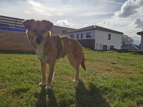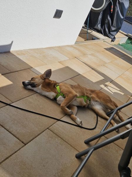 Wir schätzen, dass sie in Rumänien ziemlich rangniedrig war, entsteht bei uns Hektik in der Hundegruppe wird sie unruhig und benötigt Unterstützung.
