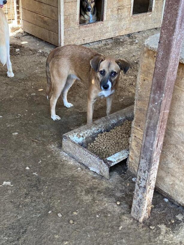 ESTRELA zeigte sich bei unserem Besuch interessiert. Sie kam nah zu uns und nahm vom Boden hingeworfene Leckerchen. Sie braucht Zeit um Vertrauen aufzubauen, im Moment ist sie weiterhin unsicher und weicht aus.