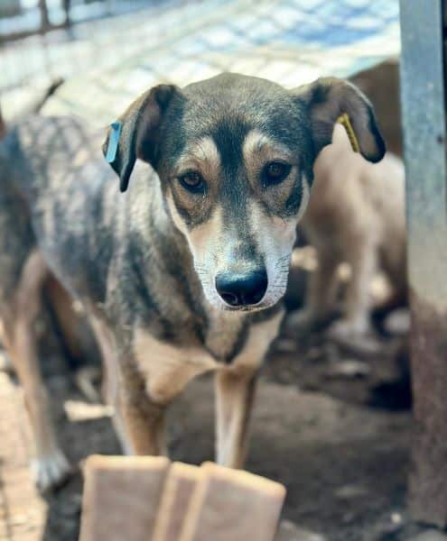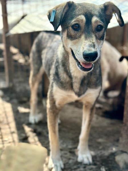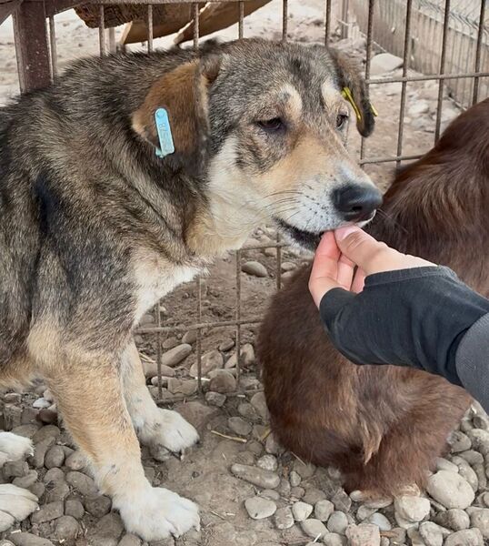 Wesen & Zutraulichkeit (Character & Trustworthiness) | freundlich (friendly), neugierig (curious), nimmt Leckerchen (takes goodies), letzter Vertrauensschritt fehlt (last step of confidence is missing), benötigt Eingewöhnungszeit (takes time to settle in), gerne Zweithund (happy second dog) |