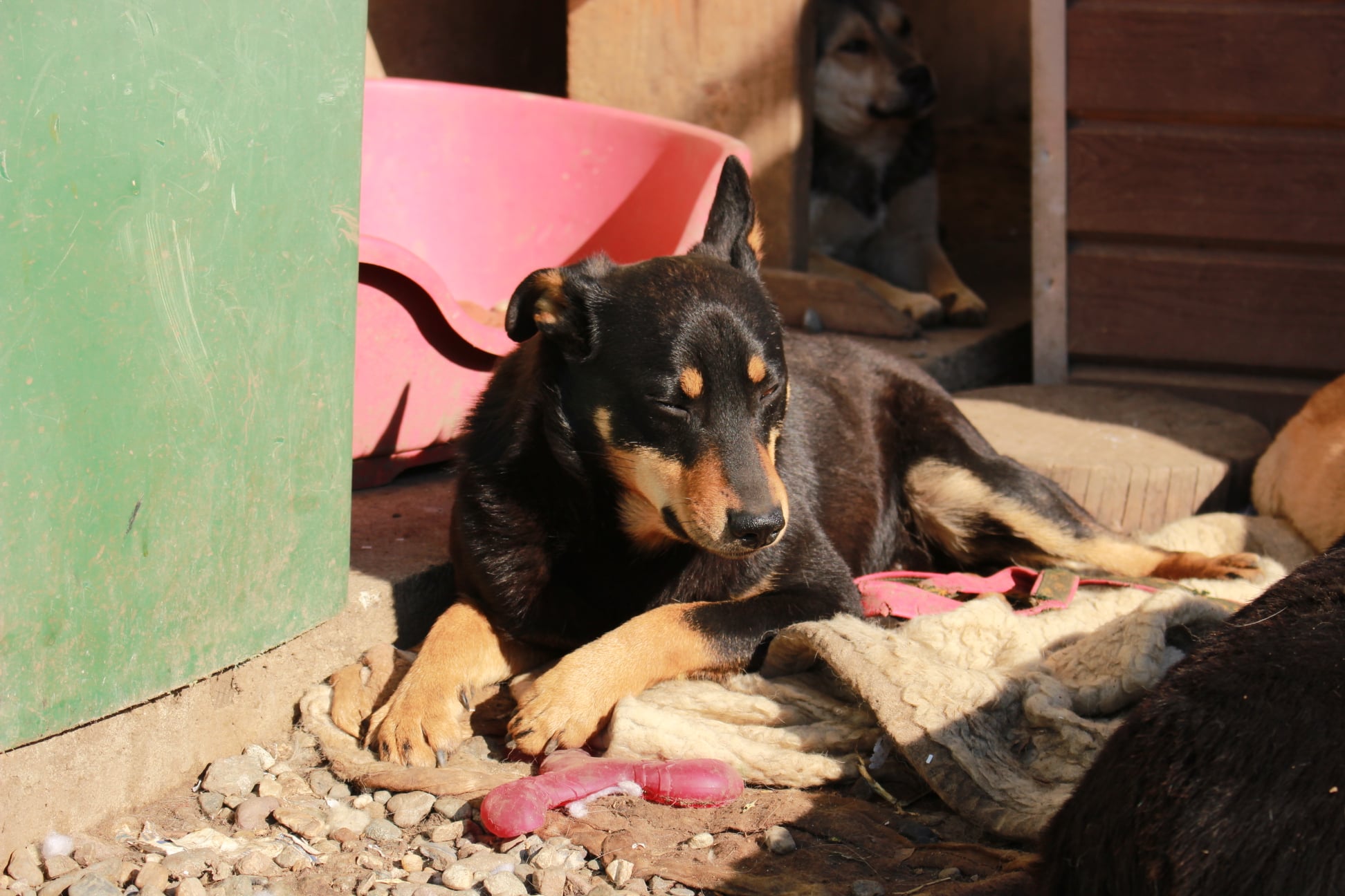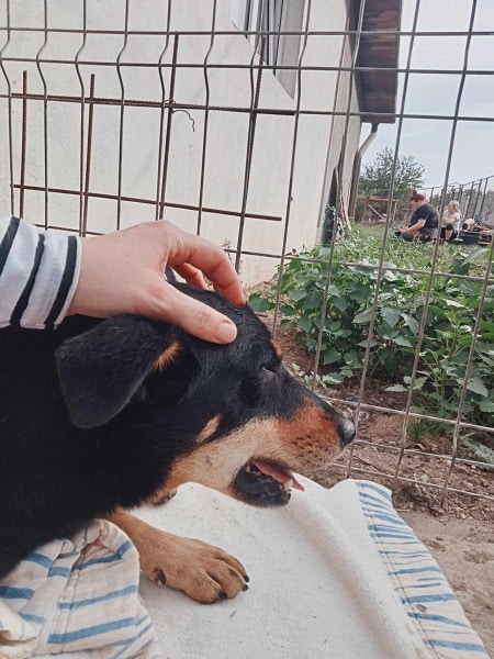 Update 10/23: Ettel ist zur eigenen Sicherheit weiterhin in der Quarantäne untergebracht, mit ihm einige Welpen. Er scheint die Gesellschaft der Welpen zu geniessen, er und die Welpen liegen oft beieinander. Er ist sehr verträglich, sehr freundlich, offen zum Menschen und sucht Kontakt. Ettel braucht immer etwas Grip unter den Pfoten, da er sonst wegrutscht. Er bräuchte dringend Physiotherapie. jetzt wo es so heiss war, fiel ihm auch das atmen schwer, wir haben ihn abgehört, ein Geräusch war nicht festzustellen. Da er in der Quarantäne keinen Auslauf hat, oft liegt, fällt ihm wahrscheinlich die Bewegung in Verbindung mit der Hitze etwas schwerer. Er genoss unsere tägliche Zuwendung so sehr und schaute mit uns den anderen Volontären bei der Arbeit zu. Wir hoffen so sehr, dass der so bezaubernde Rüde, trotz seines Handicaps bald ein zu hause findet, er hätte es nach über 1,5 Jahren verdient. Ettel braucht ein ebenerdiges zu Hause mit Garten.