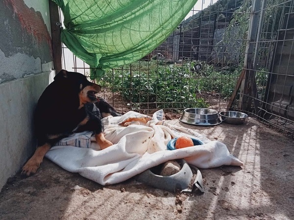 Update 05/23: Der wunder schöne Rüde Ettel wurde in einen Kennel umgesetzt in dem er gar nicht klar kam, er lag dort ängstlich in der Hütte. Die anderen Hunde haben ihn zu sehr bedrängt, er ist sehr devot und ist außerdem durch die vielen Hunde zur Seite geschubst worden. Daher ist er wieder ins Vethouse gezogen, wo es ihm besser geht und sich sicherer fühlt. Im Quarantäne Bereich ist Ettel mit den Welpen untergebracht. Er sollte dringend ausreisen.