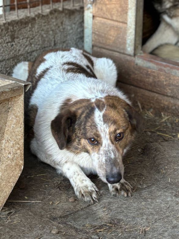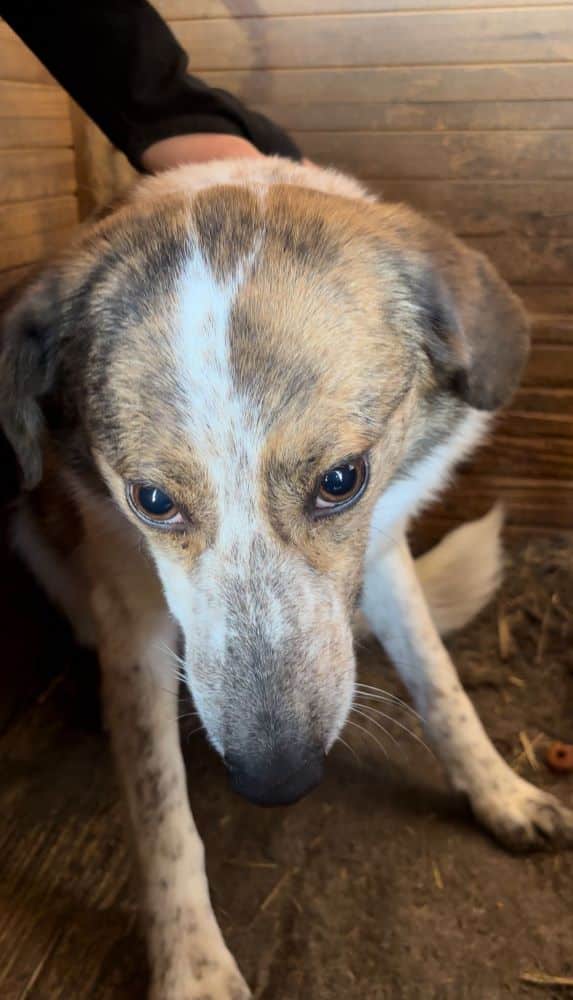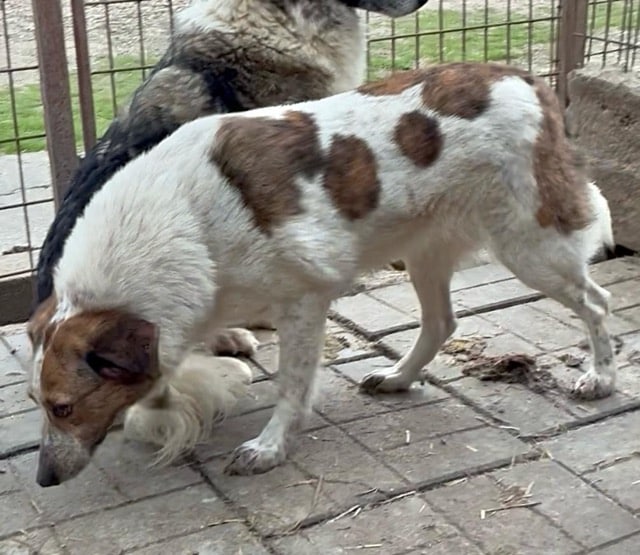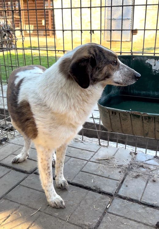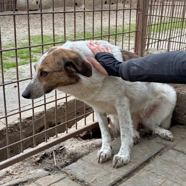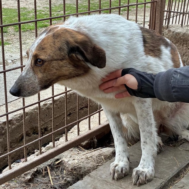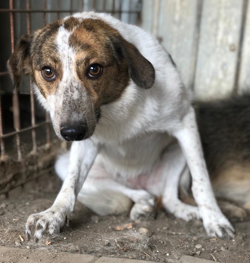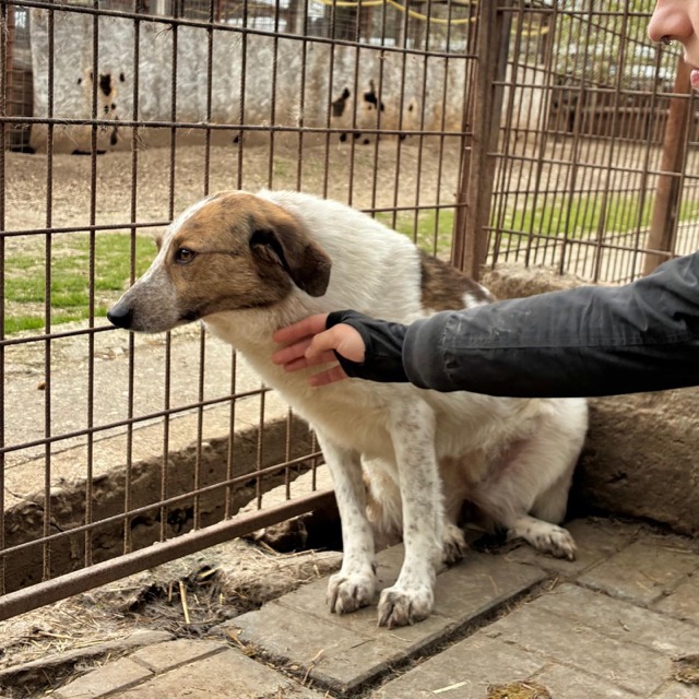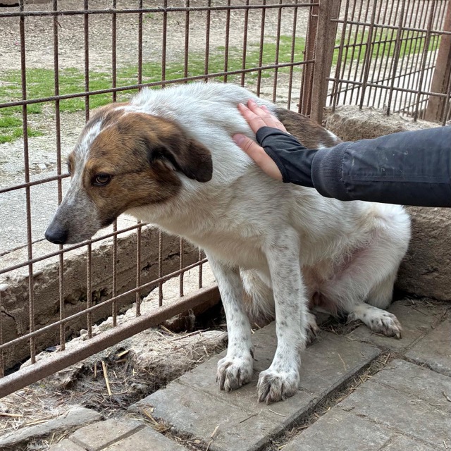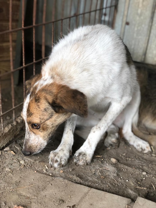 Die wunderschöne EVA war von unserem Besuch wieder sehr beeindruckt. Mit aufgerissenen Äuglein beobachtete sie unser Tun und hielt zunächst ihren Sicherheitsabstand ein. Dabei bewegte sie sich frei im Kennel. Es war uns jedoch möglich, sie nach einer Weile in der Hütte unter etwas Bedrängung zu streicheln. EVA blieb die ganze Zeit über vollkommen defensiv und hielt die für sie ungewohnte, intensive Nähe tapfer aus. Ganz wohl war ihr augenscheinlich nicht bei der Sache – kein Wunder – wurde sie vermutlich seit Jahren nicht gestreichelt – oder noch nie… Und so konnte sie unsere zärtlichen Berührungen natürlich noch nicht genießen. Doch sie zeigte uns damit eindeutig, dass sie bereit ist, uns ihr Vertrauen zu schenken. Nun suchen wir dringend einen erfahrenen Platz bei liebevollen Menschen, die EVA die Chance geben, in ihrem Tempo anzukommen und aufzutauen und sich endlich fallen lassen zu können. Ein souveräner und aufgeschlossener Ersthund könnte ihr dabei sicher eine große Stütze sein, denn EVA wirkt mit den anderen Hunden in ihrem Kennel durchgehend verträglich.