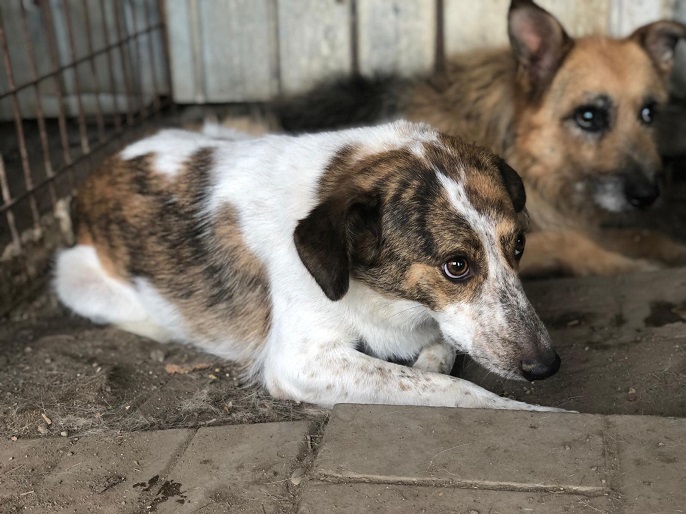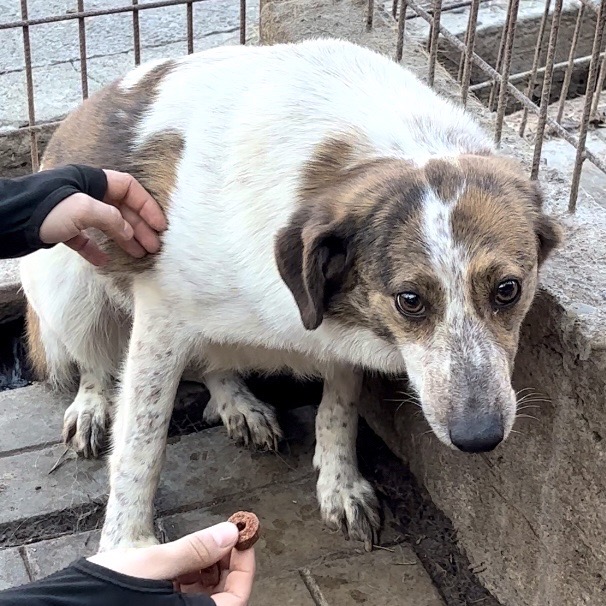 Unsere wunderhübsche EVA mit der tollen Fellzeichnung hofft nun seit fast 4 langen Jahren im Shelter auf ihre Chance. Auch bei diesem Besuch hielt sie sich eher im Hintergrund auf und wich unseren Kontaktaufnahmen nach Möglichkeit aus. Zu fremd ist ihr die intensive Nähe zu uns Menschen durch die lange Zeit der Isolation. Vom Boden nahm EVA gern die Leckerlie und n einer Ecke des Kennels konnten wir sie auch wieder behutsam streicheln. Ganz wohl war ihr nicht dabei – sie kennt Liebe und Zuwendung einfach nicht. Daher hoffen wir für die sensible Maus, dass sie nun endlich von erfahrenen und einfühlsamen Menschen gesehen wird, die sie an die Pfote nehmen und an ein Zusammenleben auf der Sonnenseite heranführen. Damit EVA endlich Geborgenheit erfahren darf.