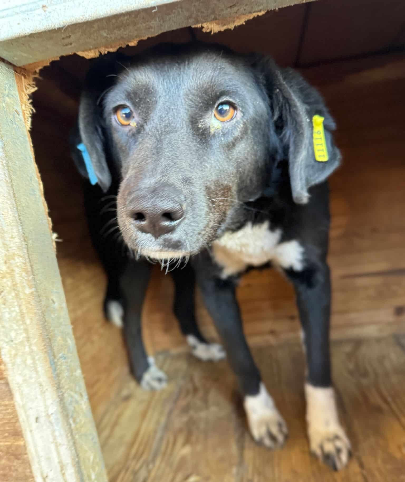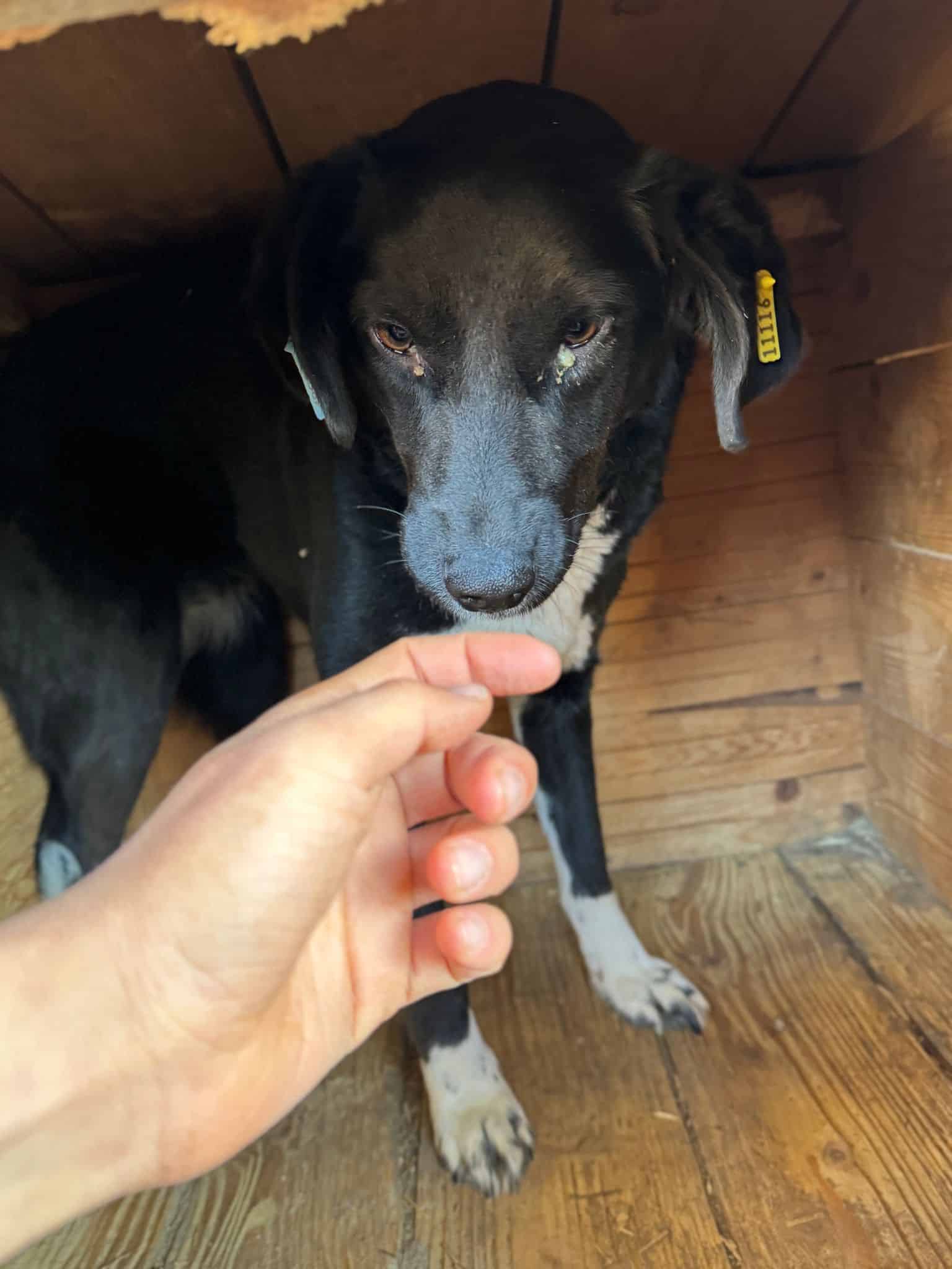 Die hübsche EVI ist eine noch etwas unsichere Hündin, die in einem stressigen Kennel sitzt und sich bei unserem Besuch nur in der Hütte aufgehalten hat. Sie nahm dort gerne unsere Leckerlies aus der Hand und wir konnten sie auch vorsichtig an der Schnauze berühren. Richtig anfassen lassen wollte sie sich aber nicht und wich bei Berührungsversuchen zurück. Mit Artgenossen zeigte sie sich verträglich.