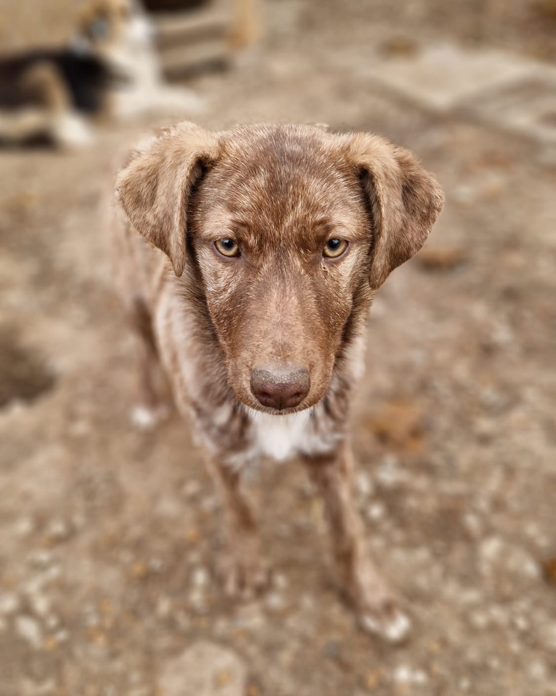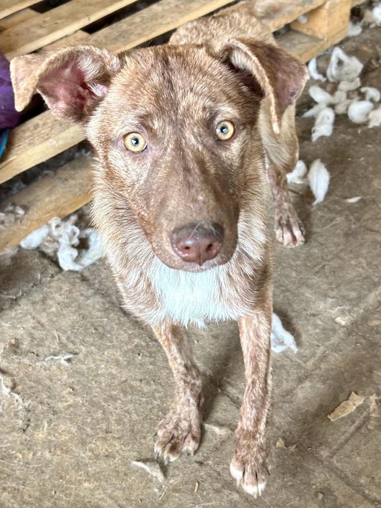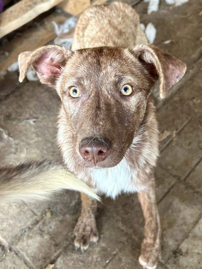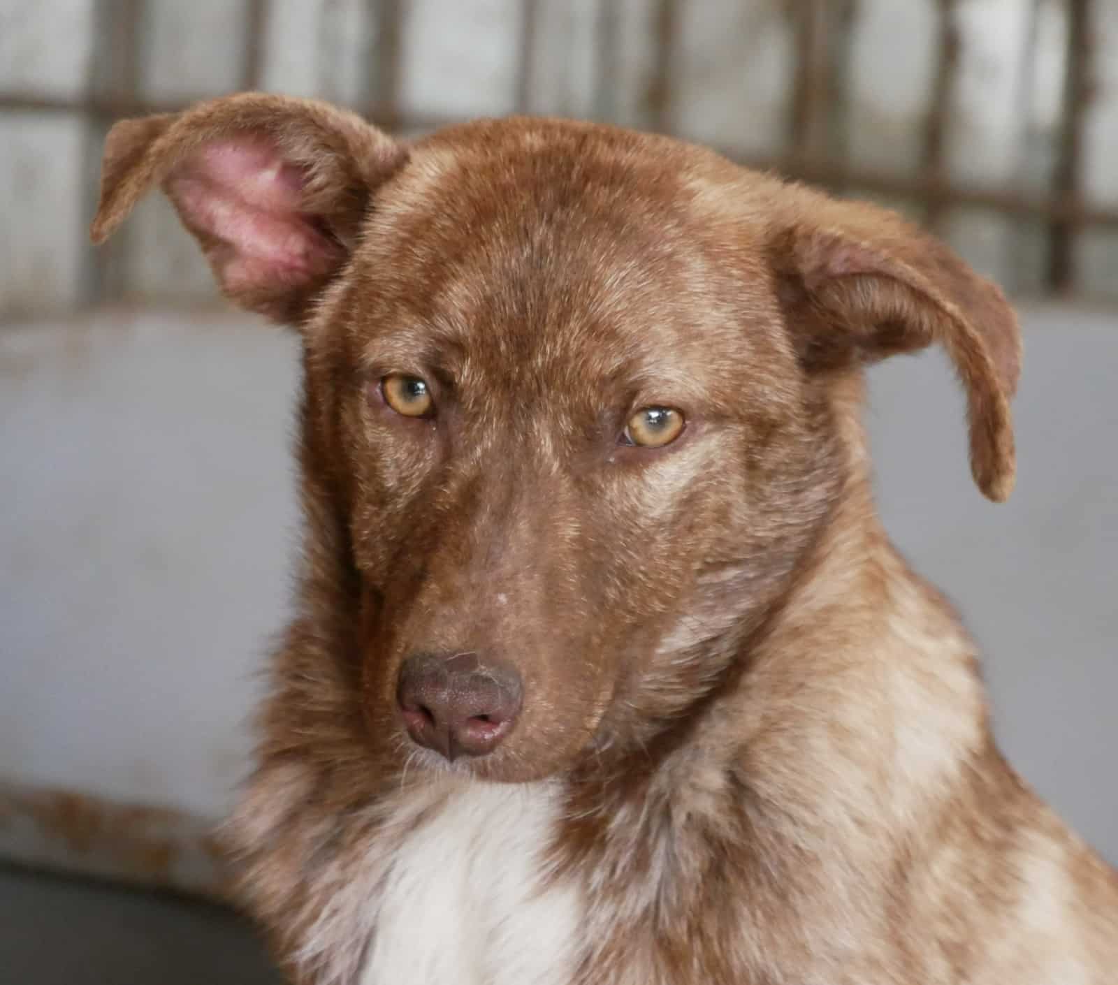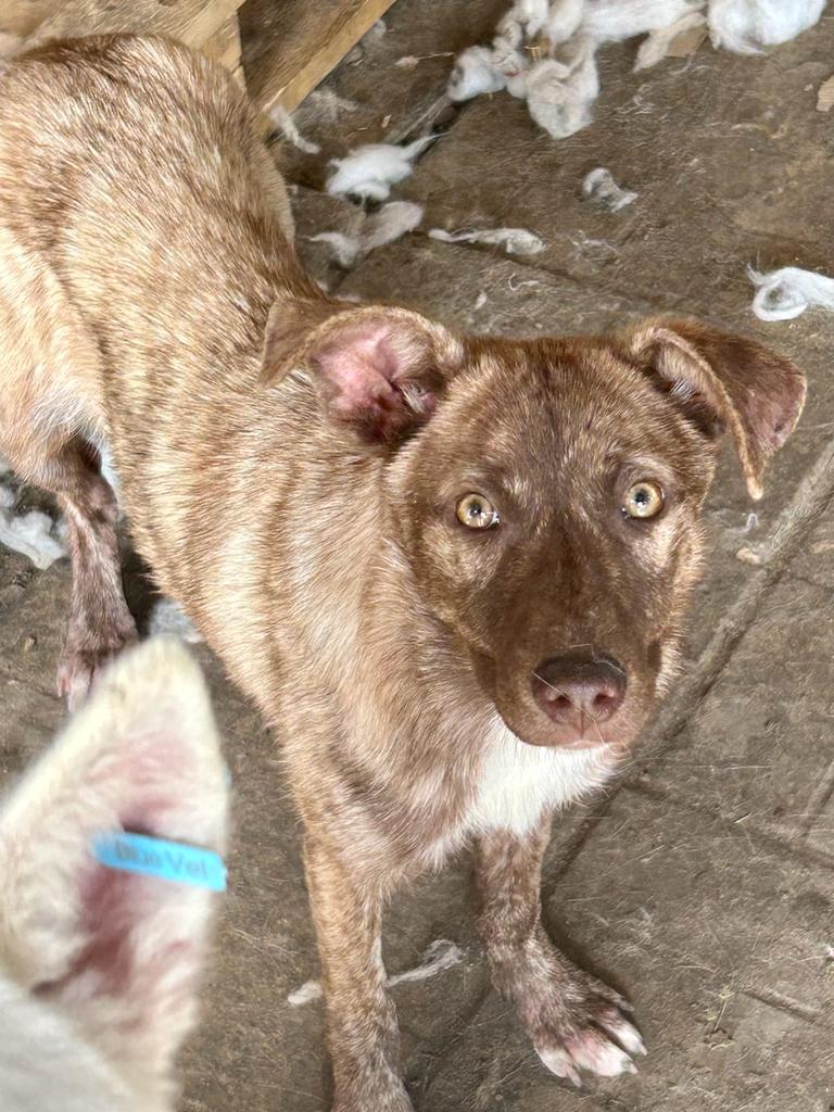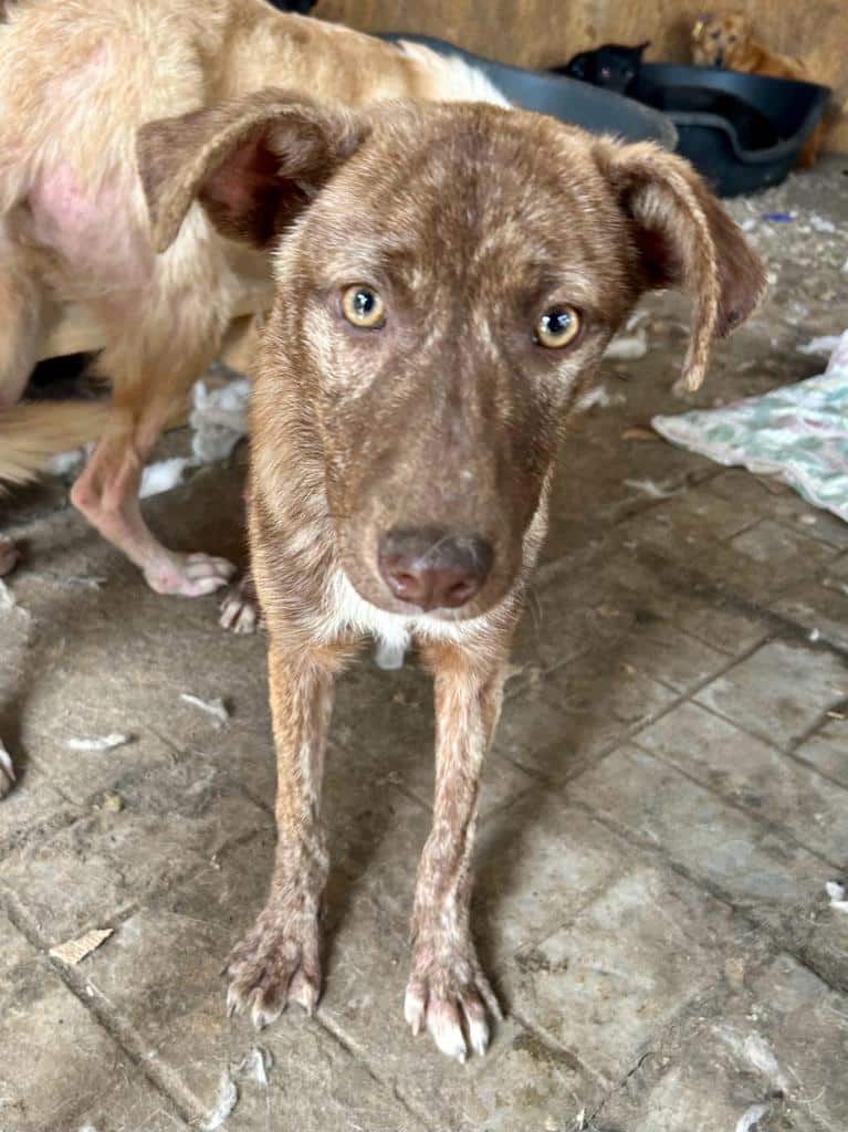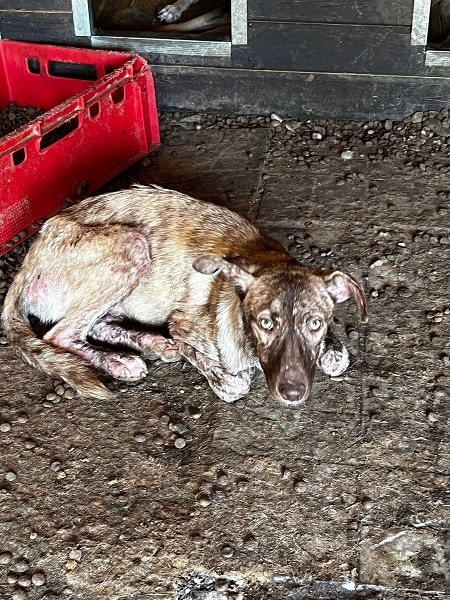 FABINA sitzt nun in einem Kennel für medizinische Behandlungen, man erkennt noch abklingende Hautprobleme. Sie war zunächst verschreckt und wusste mit unserer Anwesenheit nichts anzufangen. Wir konnten sie aber gut anfassen, sie zeigte keine Abwehr, war sehr artig. Ein hübsches Mädchen, welches in einem verständigen Zuhause bestimmt schnell auftaut.