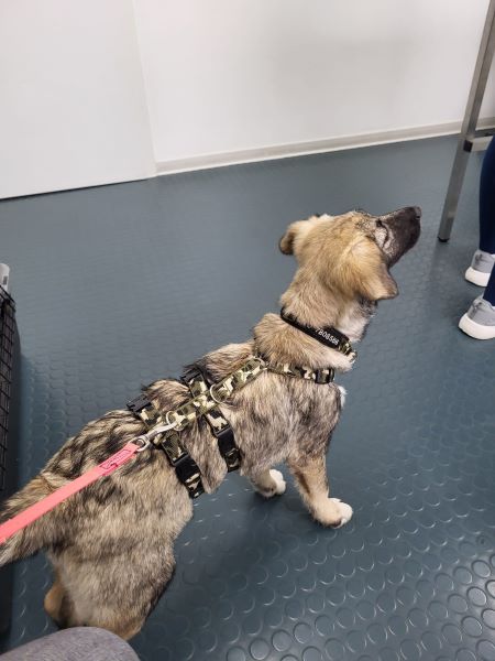 Sie ist nicht futterneidisch und man kann ihr Futter / andere Dinge gefahrlos wieder abnehmen. Gassigehen findet sie großartig und ist aufmerksam dabei. Rückorientierung zum Pflegefrauchen wird mit viel Leckerchen belohnt.
