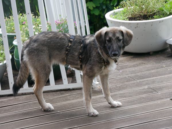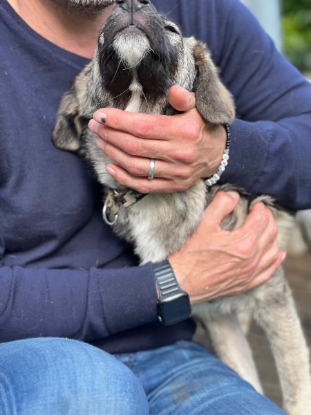 - Gewicht: ca 10 kg weiches flauschiges Fell in graubraun, dunkler Fang, weiche Hängeöhrchen und die Rute recht gerade getragen