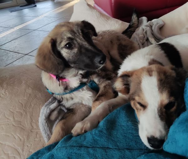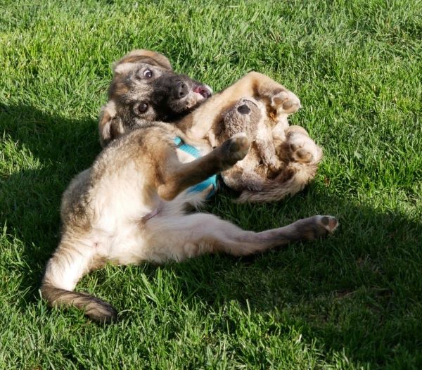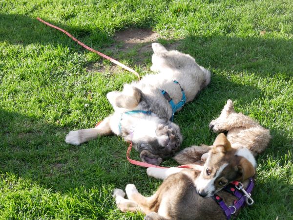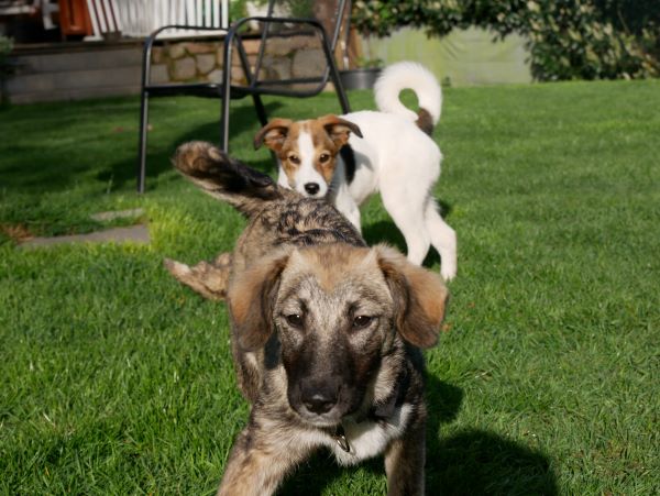 Sie lebt hier in einem Hündinnenrudel gemischten Alters und kommt mit allen gut klar; sie gehört zu denen, die das Spiel beginnen. Die Leithündin wird respektvoll umgarnt.