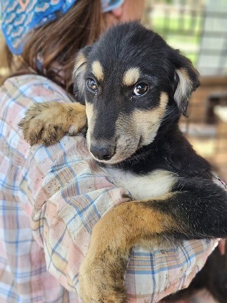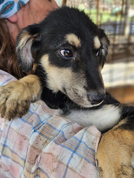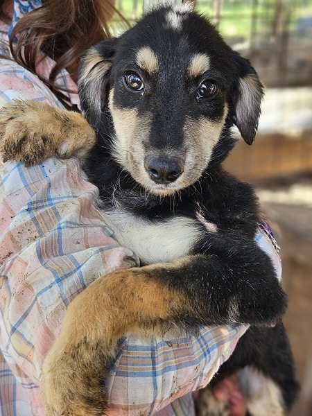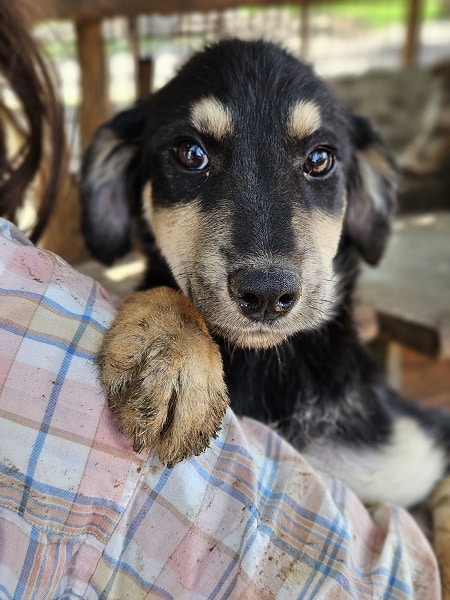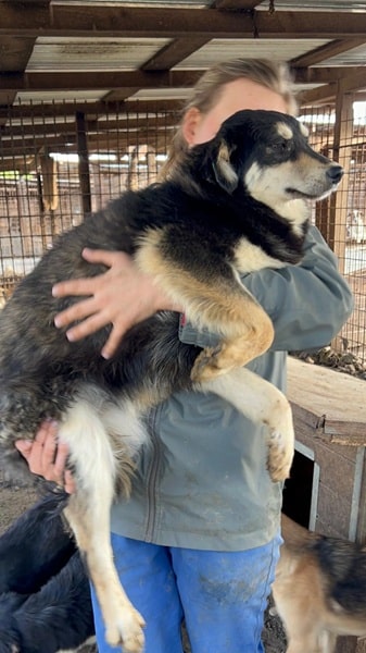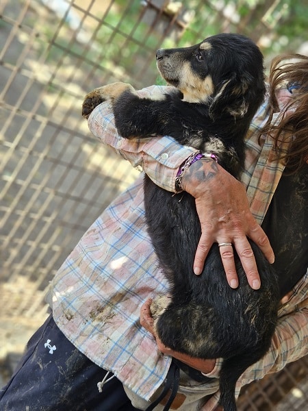 Die ruhige FANIA fand unseren Besuch ganz toll. Unaufdringlich war sie immer in unserer Nähe und nahm Leckerchen. Wir konnten sie gut auf den Arm nehmen und problemlos streicheln. Im gemischten Rudel lebt sie verträglich. Jetzt sollte die zutrauliche Junghündin endlich ihre Menschen finden, damit sie ihr Leben genießen kann.