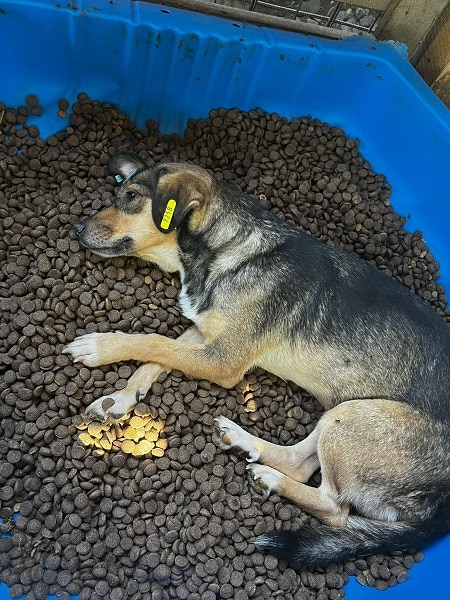 lag die ganze Zeit in der Futterschale und wollte nicht aufstehen, vielleicht lag es an der Hitze