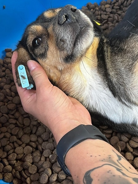 hat sich prima überall streicheln lassen, als wir allerdings nach ihrem Geschlecht fühlen wollten, kam ein kurzes Abwehrschnappen – evtl. empfindlich an der Stelle