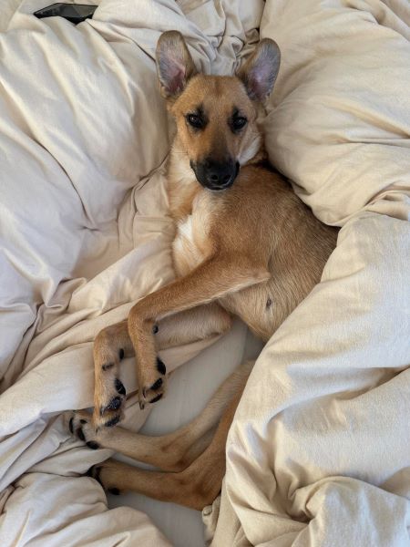 Aktuell lebt Fanta in einem Mehrfamilienhaus in Köln und kennt den Straßenverkehr. Menschen und andere Hunde auf der Straße ignoriert sie.