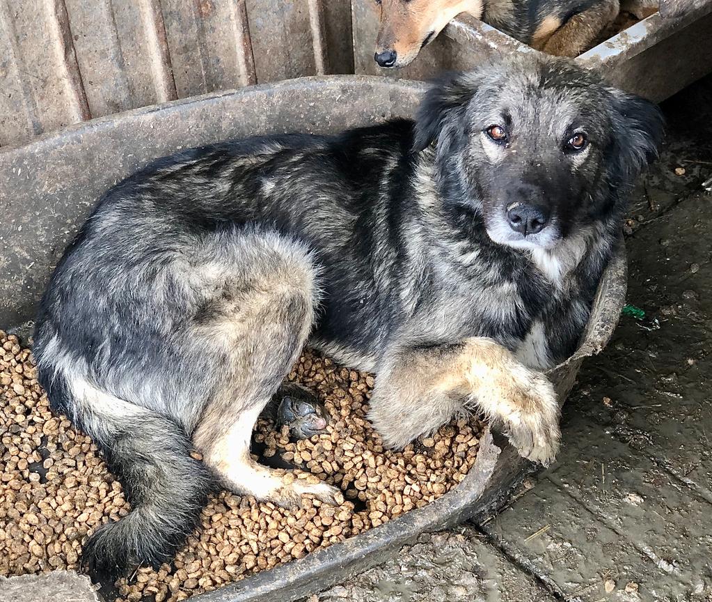 Sie lebt aktuell mit 17 (!) Junghunden in einem Kennel. Dafür braucht man Nerven aus Stahl. Sie nimmt dies alles mit einer souveränen Ruhe hin. Tolle Persönlichkeit. Hoffentlich wird sie gesehen. Sie hatte früher einmal Welpen gehabt.