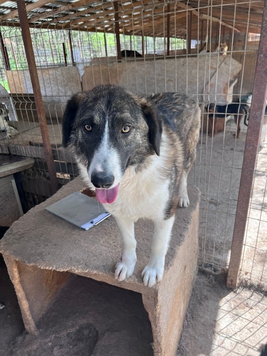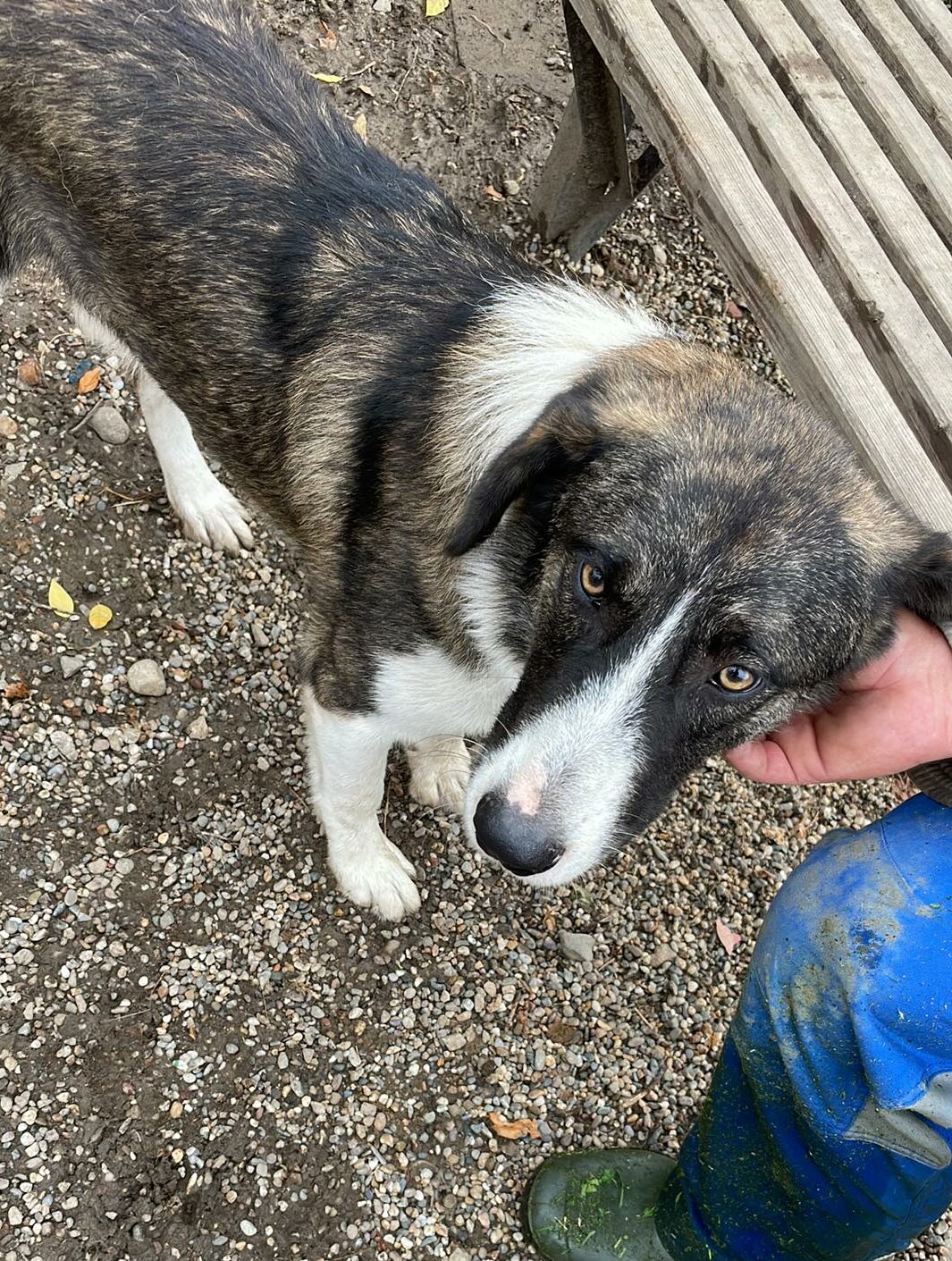 Update 04/24: Farley liess sich auf dem Hüttendach sehr gut anfassen und genoss die Streicheleinheit von Kopf bis Rute sehr. Er wirkte sehr gelassen auf uns und in seiner Hundegruppe ist er verträglich und freundlich.
