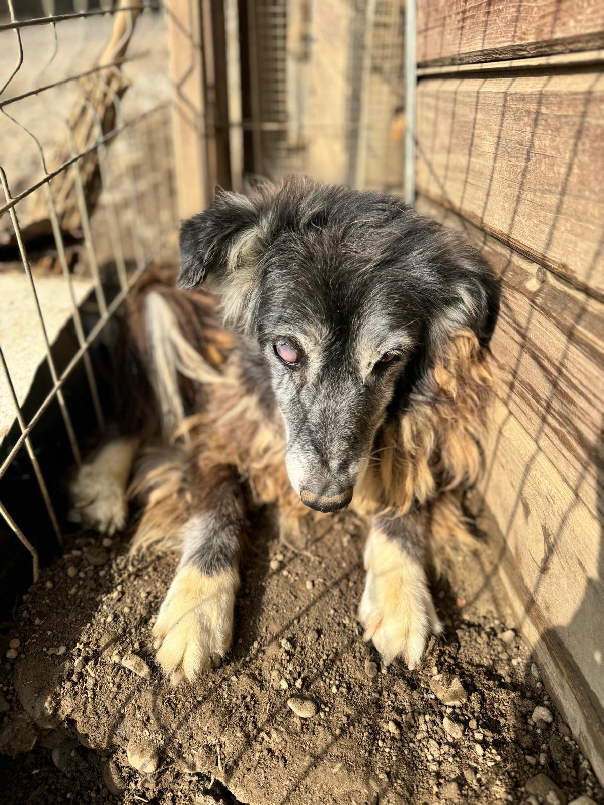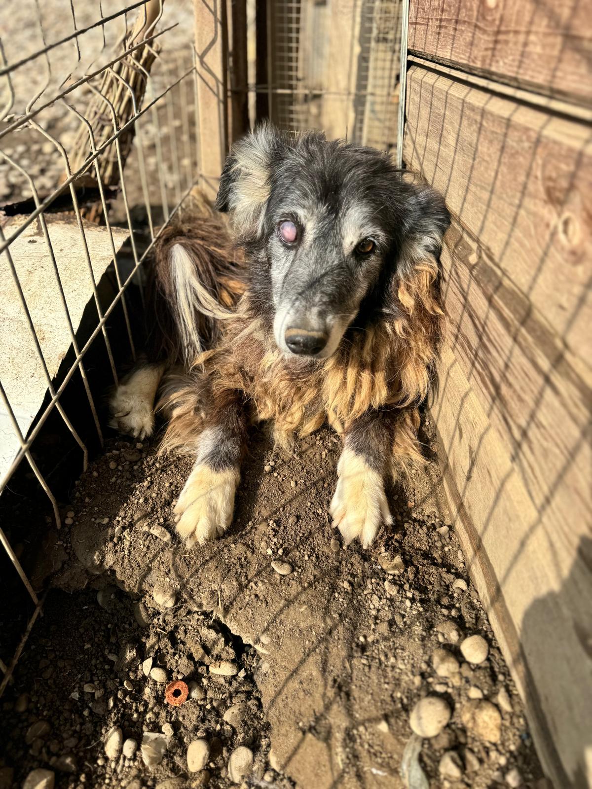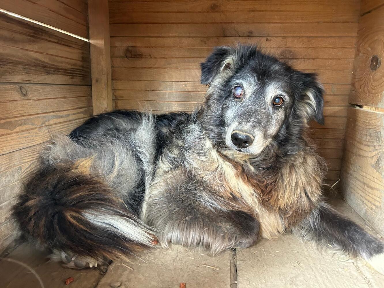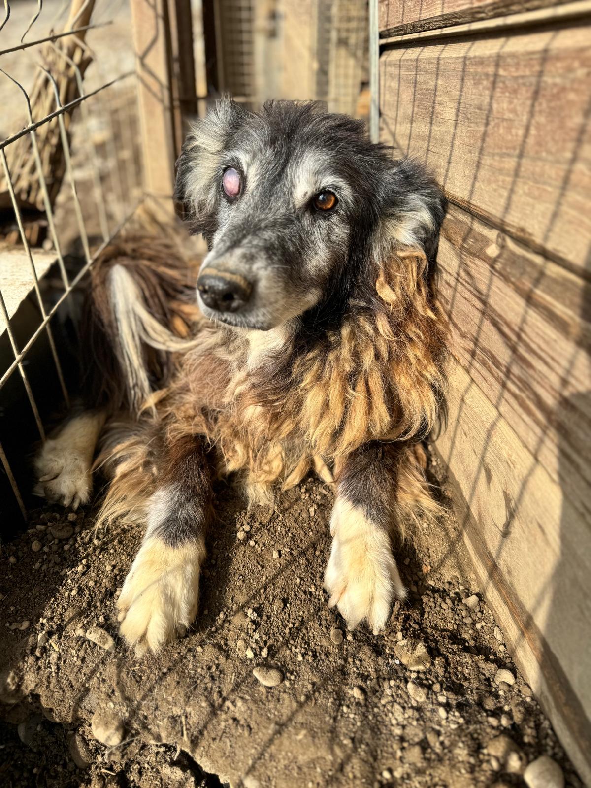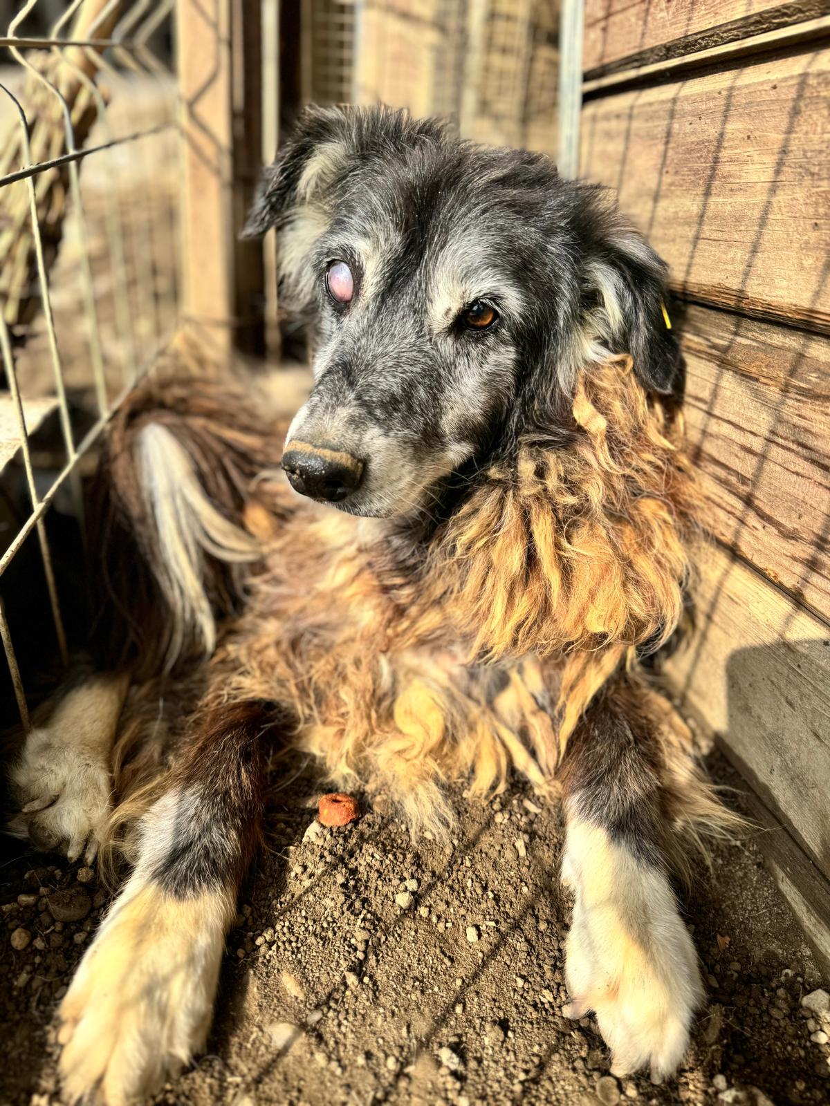 FARZAD – Was für ein süßer Wuschel! Bereits etwas älter hat er auch schon so seine Baustellen. Das rechte Auge ist trüb, also wird er auf diesem Auge nichts mehr sehen können, die Hinterbeine wollen auch nicht mehr so. Aber seiner Lebensfreude tut das alles keinen Abbruch. Sobald im Shelter etwas los ist, zeigt FARZAD, dass er noch nicht ganz zum alten Eisen gehört.