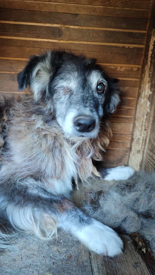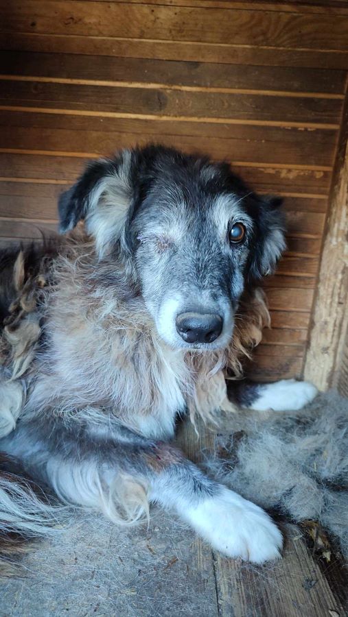 FARZAD’s rechtes Auge musste entfernt werden. Es war stark geschädigt, blind und sicher sehr schmerzhaft. Bei der Untersuchung in der Tierklinik war schnell klar, dass das Auge nicht mehr zu retten ist und entfernt werden muss. Die Operation ist letzte Woche erfolgt. FARZAD ist aktuell sehr dünn und wiegt keine 15 kg mehr. Er scheint einfach überfordert zu sein. Unsere Tierärztin Irina kann ihn gut anfassen und beschreibt ihn als netten Opa. Wir suchen nun dringend eine Ausreisemöglichkeit für FARZAD, damit sein Auge heilen kann.