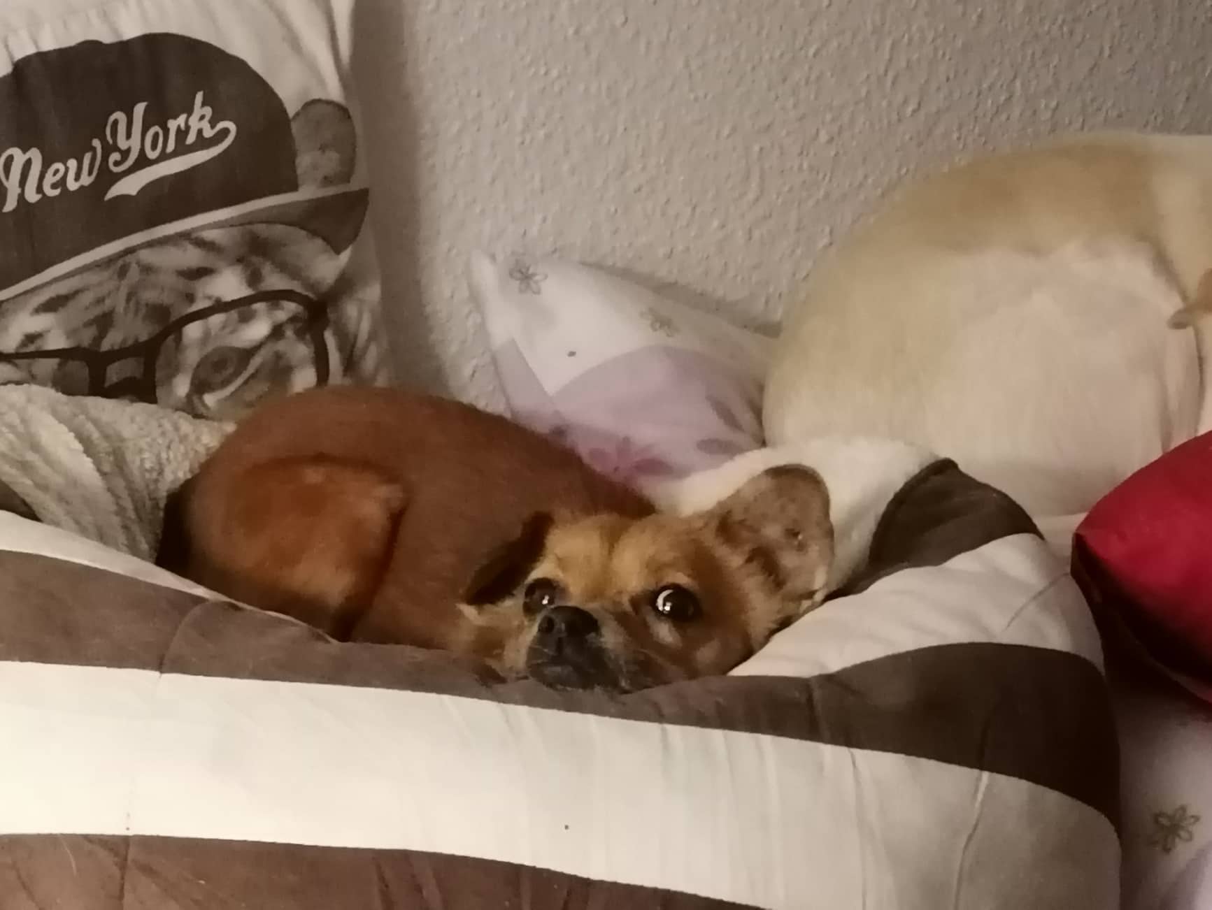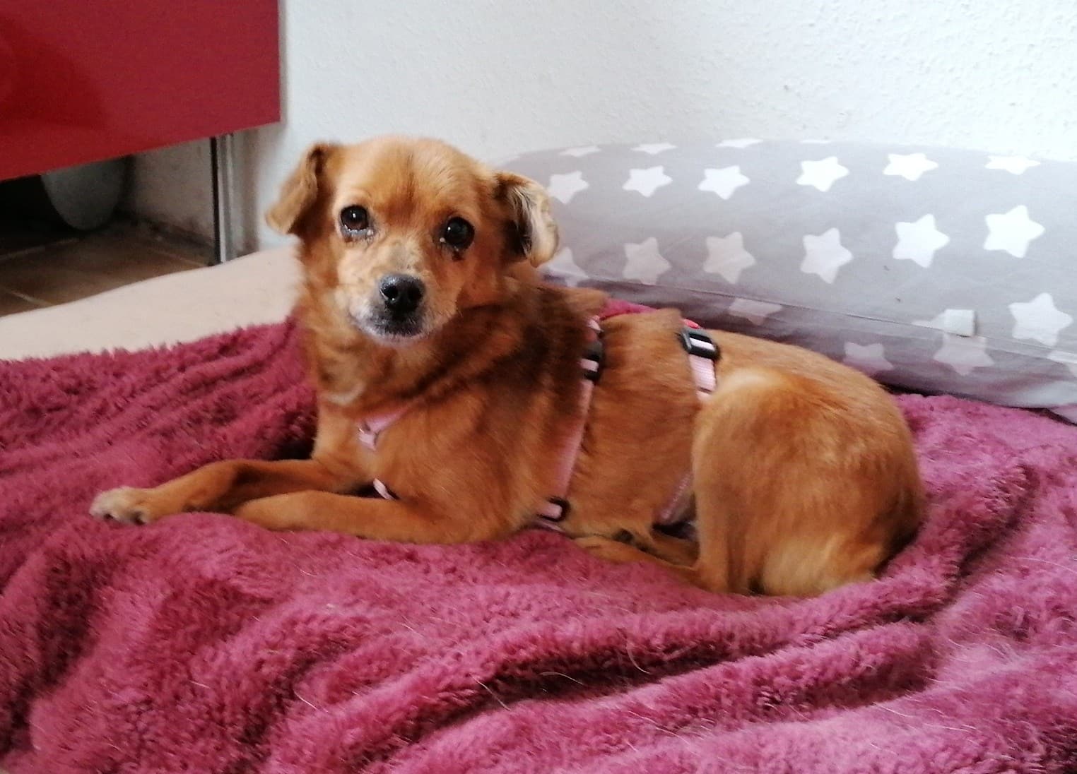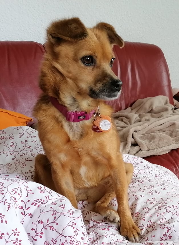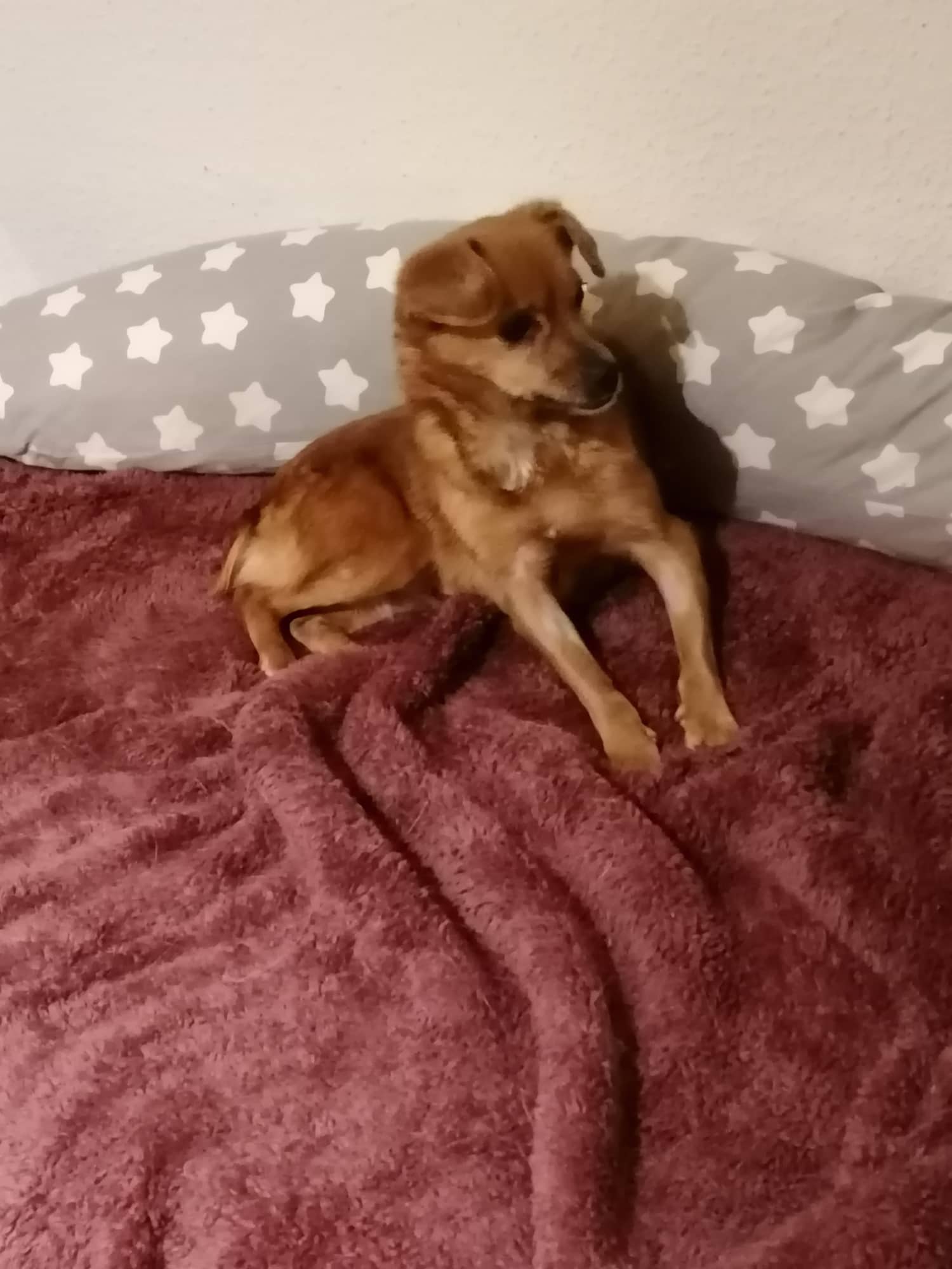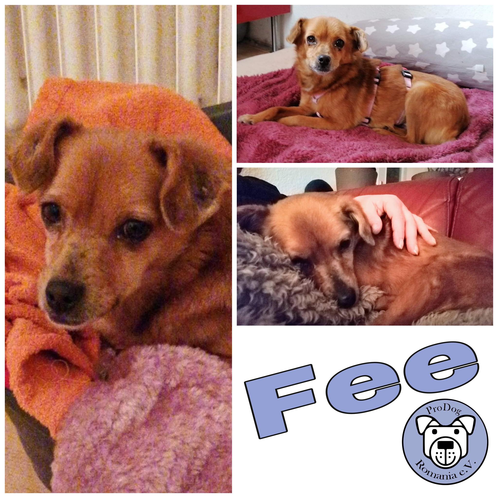 Fee hat für Verwirrung gesorgt als sie auf ihrer Pflegestelle ankam. Erwartet wurde ein noch relativ junger Hüpfer. Ein Hüpfer ist die kleine Maus sehr wohl, denn wenn das Pflegefrauchen die Näpfe füllt…ja dann gibt es kein halten mehr Laut Tierarzt ist sie ca zwischen 8 und 9 Jahre alt . Leider hat Fee etwas Gepäck mitgebracht, und wird Anfang Mai an der Schulter operiert . Sie ist und bleibt beweglich bzw mobil . Aber sie wird immer ein auffälliges Gangbild haben . Für gemütliche Spaziergänge ist sie aber durchaus zu motivieren . Das stört sie aber nicht im geringsten…sie hat sich gut im vorhandenen Rudel integriert, und versucht bisweilen sogar die Bande anzuführen :-))) Fee lebt hier mit vier weiteren Hunden und zwei Katzen . Mit unseren Katern ist sie sehr sanft und vorsichtig . Fee ist immer noch recht zurückhaltend Menschen gegenüber, holt sich aber schon Streicheleinheiten ab und ist immer in der Nähe des Pflegefrauchens . Noch ist sie durch die anstehende Op noch nicht in der Vermittlung . Aber liebe Anfragen werden angenommen