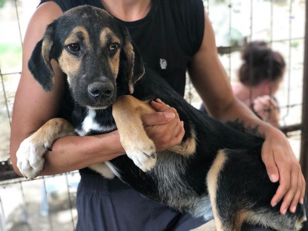 FEEDBACK ist inzwischen über zwei Jahre alt, und musste vollständig ohne Menschenkontakt im Shelter aufwachsen. Er teilt das traurige Schicksal vieler sitzengebliebener Junghunde: als er noch ein süßer Welpe war, wollte niemand ihn haben, und nun hat er sich extrem unsicher entwickelt. FEEDBACK wollte keine Leckerlies von uns annehmen und ist bei Annäherungsversuchen unsererseits geflüchtet, so dass wir keine Chance hatten, an ihn ranzukommen.