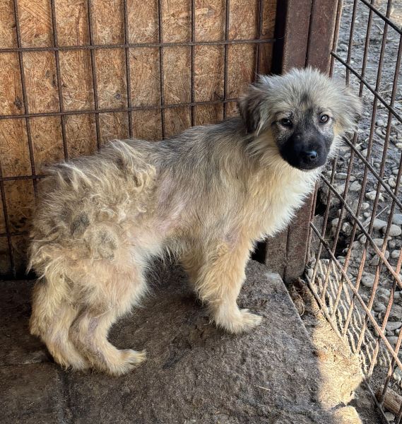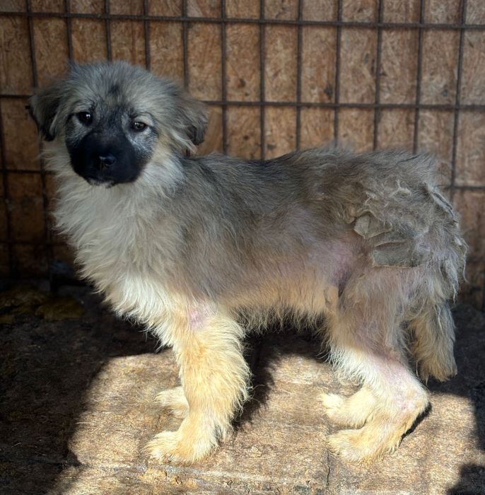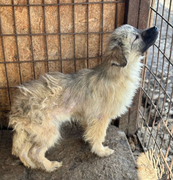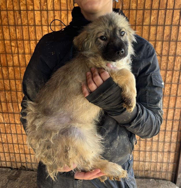Wir waren erschrocken über ihren Zustand: viel zu dünn, mit Hautproblemen (die bereits behandelt werden) und das feine Welpenfell schon total verfilzt.