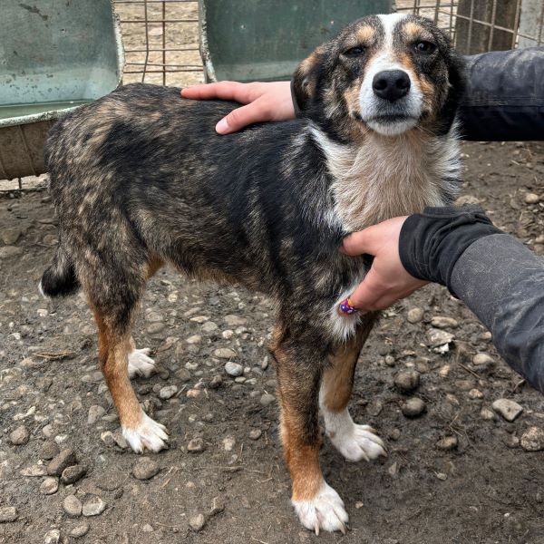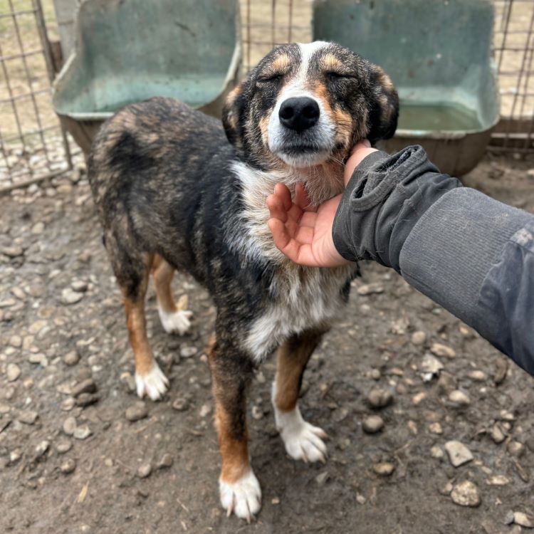 Dieses wunderschöne, zarte Hundemädchen ist seit ca. November 2023 im großen Shelter und zeigte sich von der ersten Sekunde an sehr interessiert an uns und unseren Leckerlie. Gern nahm FELIS diese direkt aus der Hand, wich näheren Kontaktaufnahmen jedoch zunächst aus. In einer Ecke des Kennels ließ sie sich nach einigen Momenten schließlich doch problemlos streicheln und auf den Schoß nehmen. FELIS schien fast überrascht, wie gut sich dies anfühlte und schloss genüsslich die Augen. Diese intensive Nähe ist neu und daher einfach etwas ungewohnt für sie – noch nie zuvor hat ihr jemand gezeigt, was Zuwendung ist. In einer ruhigen und liebevollen Umgebung würde FELIS sicher rasch komplett auftauen und Vertrauen fassen. Wir hoffen sehr, dass sie schon bald diese Chance erhält.
