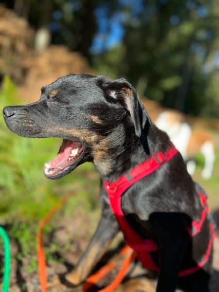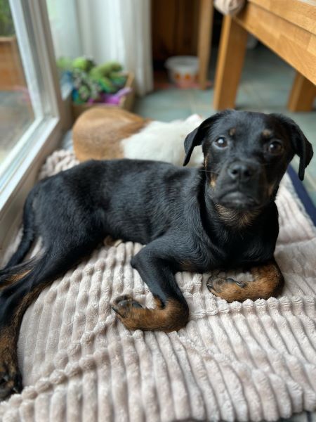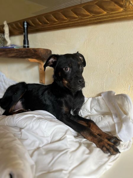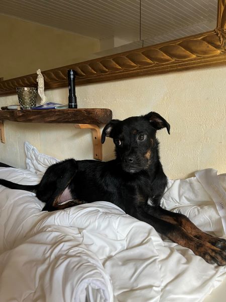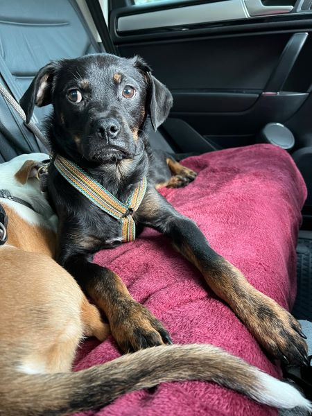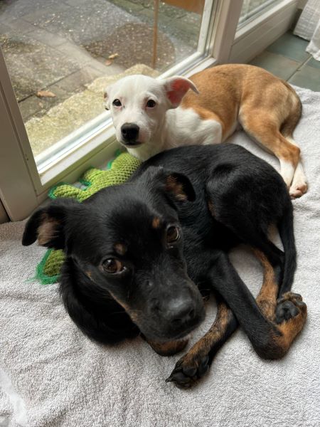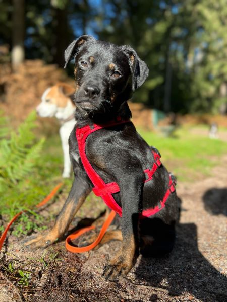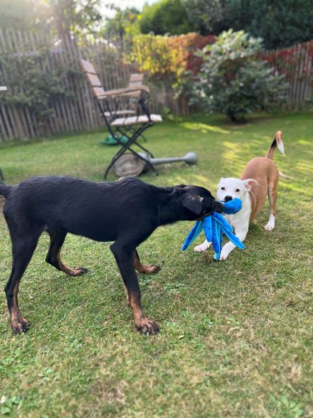 Fenja hat sich in kurzer Zeit zu einer schönen Junghündin entwickelt und ist seit Beginn stubenrein. Sie versteht sich ausnahmslos mit allen Hunden und läuft unterwegs super an der Kurz- und Schleppleine. Ruft man nach ihr, kommt sie sofort freudig und erwartungsvoll angeflitzt. Anderen Hunden begegnet sie überschwänglich und möchte am liebsten mit allen und Kontakt aufnehmen, jedoch immer freundlich und wohlgesonnen. Hier ist noch etwas Training notwendig.