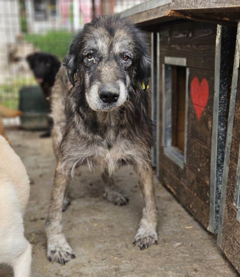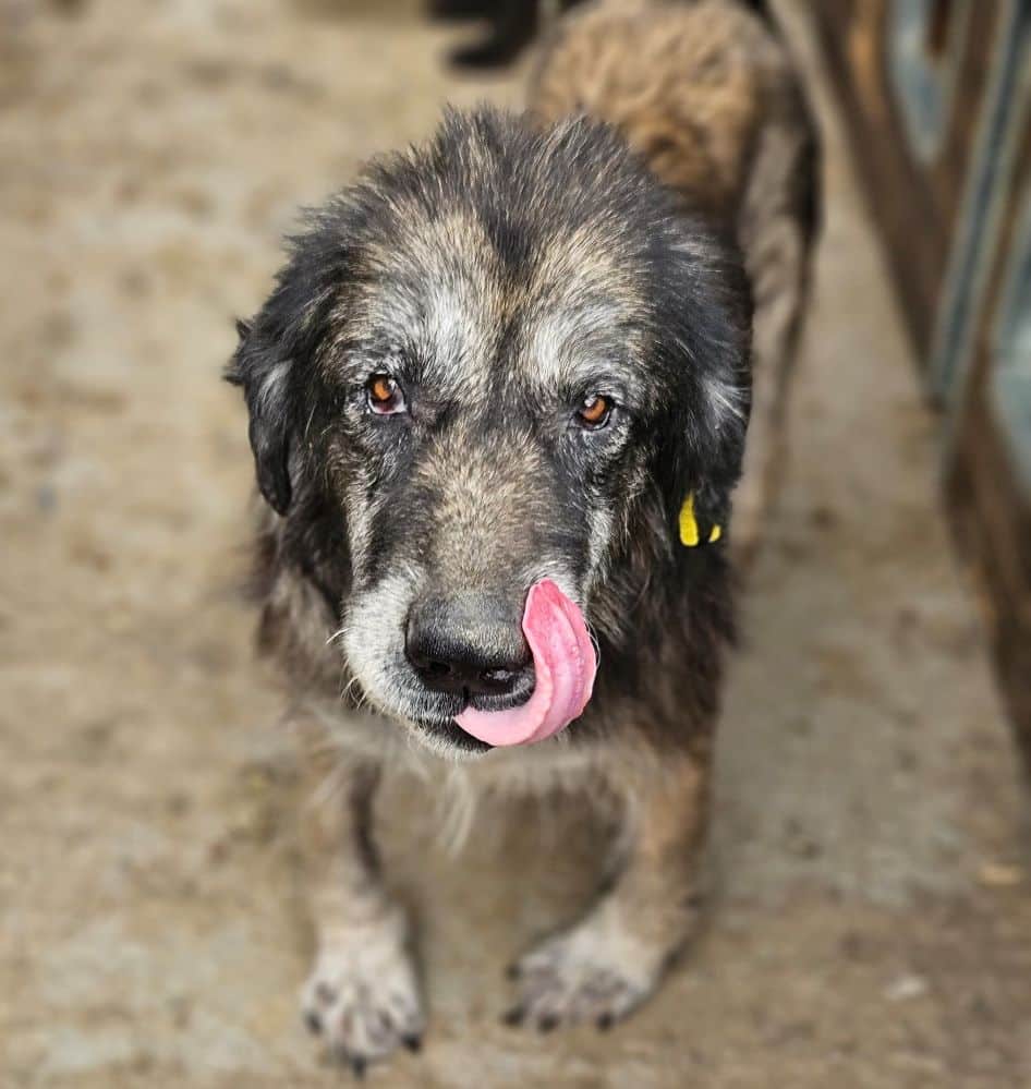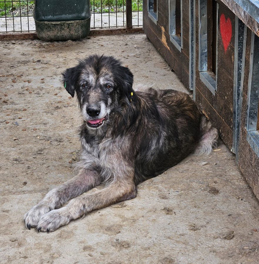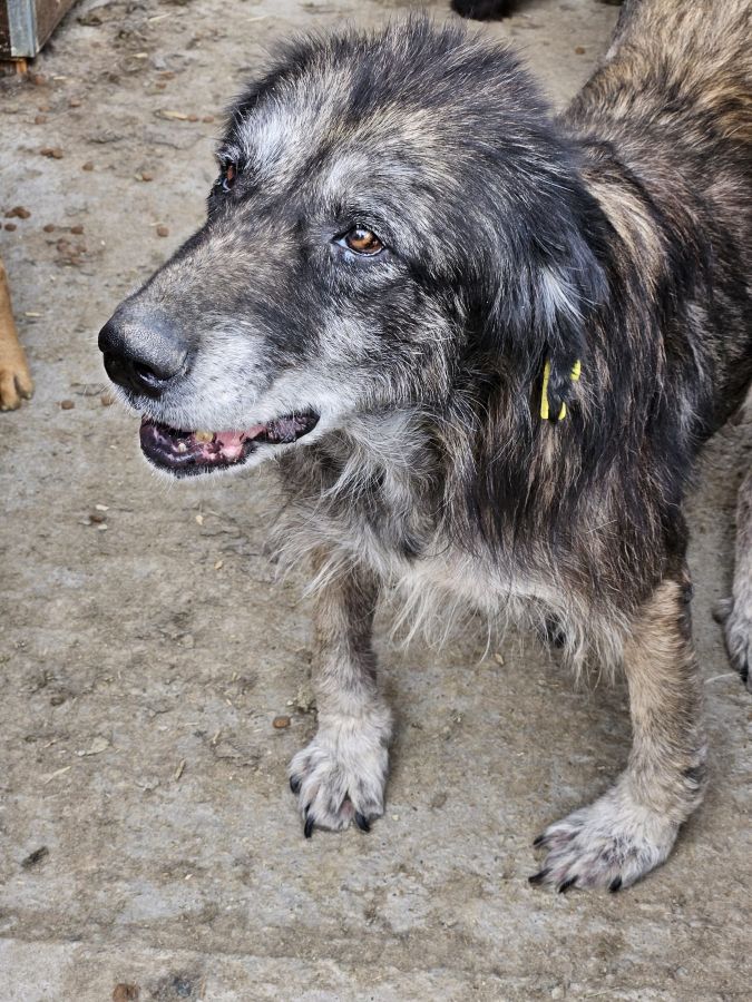 Auch dieser mindestens 12 Jahre alte Senior wurde in Bucov abgegeben. Seine Vorderbeine sind stark deformiert und seine Augen entzündet. Auch seine Zähne sind altersentsprechend schlecht. Unsere Tierärztin kann FERDINAND liebevoll streicheln, bei Fremden ist er anfangs etwas skeptisch. Er sitzt in einem vollem Kennel, was gut zu funktionieren scheint. Allerdings war er vorher in einem anderen Kennel, wo er sich futterneidisch zeigte und deshalb herausgenommen werden musste. Für den älteren Opa FERDINAND suchen wir dringend einen Platz, bei Menschen mit Erfahrung im Umgang mit Herdenschutzhunden oder großer Hundeerfahrung, wo er seine verbleibende Zeit in Ruhe und Geborgenheit verbringen darf.