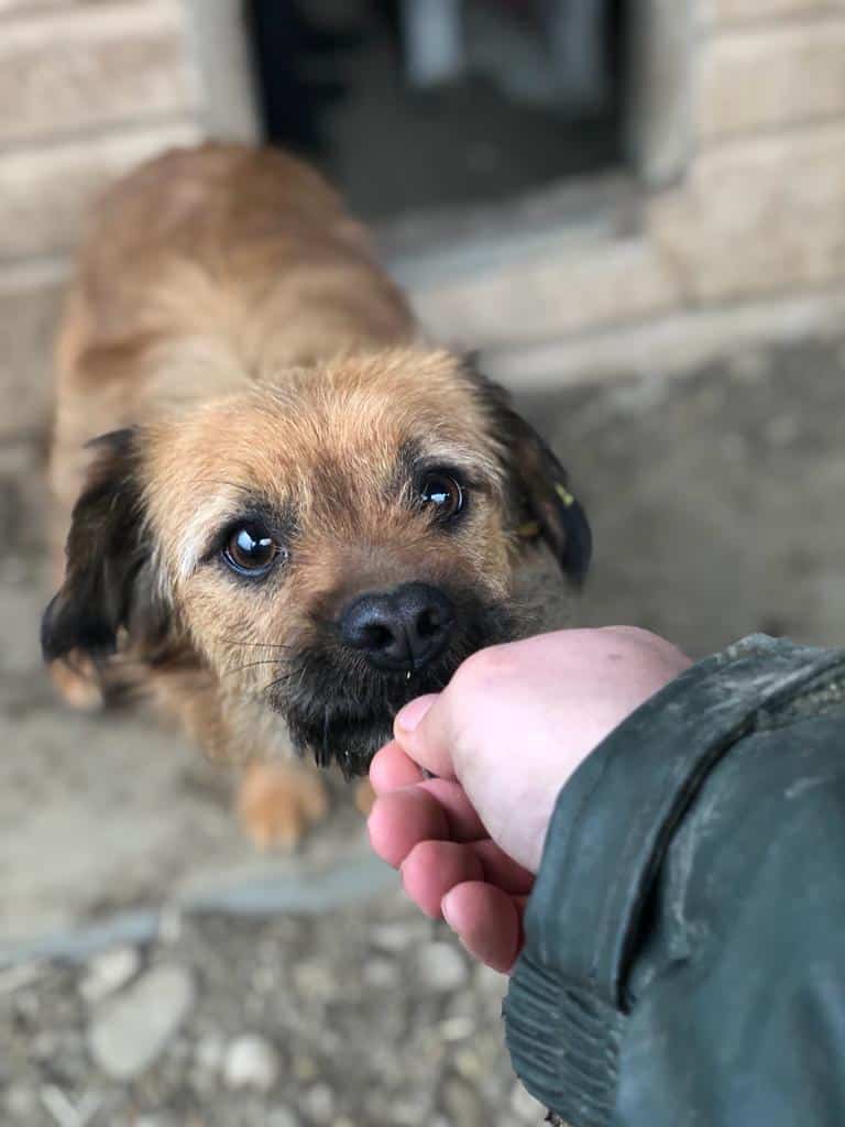 Sehr süßer, kleiner & neugieriger Fratz. Er kam immer wieder in unsere Nähe und holte sich problemlos Leckerchen ab. Unter Bedrängung packte er dann doch deutlich seine Beißerchen aus. Wir brauchen Menschen, die mit kleinen Angstschnappern umgehen können und dazu bereit sind, die erste Zeit mit Maulkorb zu arbeiten. Hat er einmal verstanden, dass von uns keine Gefahr ausgeht, wird die Schnappschildkrötenphase sicherlich ein Ende haben. Im 9er Rudel zeigte er sich sehr verträglich.