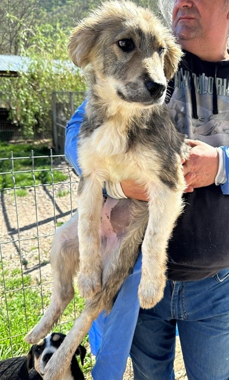 Update 07/24: Fergus ist anfassbar und verträglich, in der Gruppe kein Hund der sich vordrängelt, er steht lieber in der 2 Reihe. Beim Anfassen bleibt er defensiv aber so richtig geniessen kann er es leider noch nicht. Kein Wunder, er kennt nichts anders als Shelter. Er würde sicherlich aufblühen, sobald er spürt da ist Sicherheit und ein kompetenter Mensch, der ihn verstehen und lesen kann.