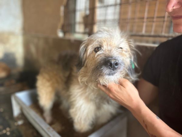 FIDAN ist nun in einen Außenkennel umgezogen. Dort zeigt er sich weiterhin super nett und sanft. Er genoß die Streicheleinheiten sehr und wir hoffen, dass er bald sein eigenes Körbchen findet. In seinem Kennel scheint er verträglich.