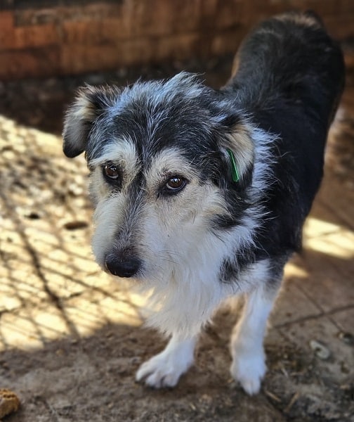 Wesen & Zutraulichkeit (Character & Trustworthiness) | freundlich (friendly), neugierig (curious), nimmt Leckerchen (takes goodies), letzter Vertrauensschritt fehlt (last step of confidence is missing), benötigt Eingewöhnungszeit (takes time to settle in), unsicher (insecure), braucht Zweithund (needs second dog), zurückhaltend (hesitant) |