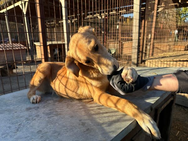 FIDIBUS ist uns sehr freundlich entgegengetreten und war immer in unserer Nähe. Er nahm unsere Leckerchen gern und gierig. Wir konnten ihn überall gut anfassen. Bei aufkommender Dynamik, der anderen Hunde im Kennel, maßregelte er diese. Deshalb sollte FIDIBUS nur zu souveränen, erwachsenen Hunden oder als Einzelhund vermittelt werden.