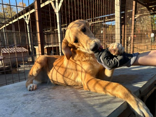 Unser süßer FIDIBUS hat es als Welpe leider nicht aus dem Shelter geschafft, zeigte sich bei diesem Besuch jedoch glücklicherweise wieder aufgeschlossener. Wir konnten ihn nach wenigen Momenten problemlos streicheln und er verteilte sogar neugierige, liebevolle Küsschen. In seinem engen und überfüllten Kennel zeigt FIDIBUS sich generell verträglich, doch es ist bekannt, dass er mit Rüden nur bedingt verträglich ist und Ressourcen wie den Futtertrog stark verteidigt. Wir suchen daher einen erfahrenen Platz bei lieben Menschen mit souveränen Hündinnen – oder aber einen Platz als Einzelprinz. So oder so wünschen wir FIDIBUS, dass der Shelter nicht seine Endstation ist. Wir hoffen, dass er nun endlich gesehen wird, damit er auf der Sonnenseite los leben und altersgerechte Auslastung erfahren darf – denn davon träumt der liebe Junge…