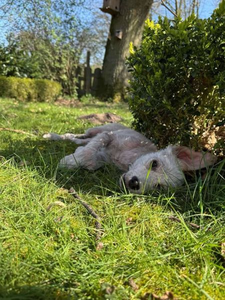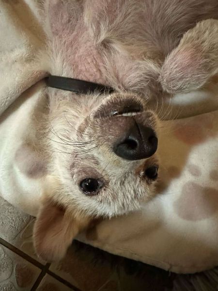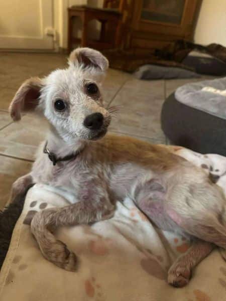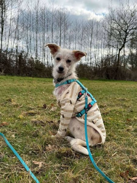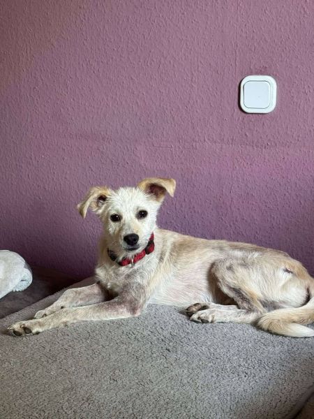 Fido ist mit starkem Milbenbefall zu uns gekommen. Er hatte starken Juckreiz, entzündete Haut und kaum Fell. Mittlerweile ist das Fell wieder nachgewachsen und er ist ein wunderschöner junger Hund geworden.