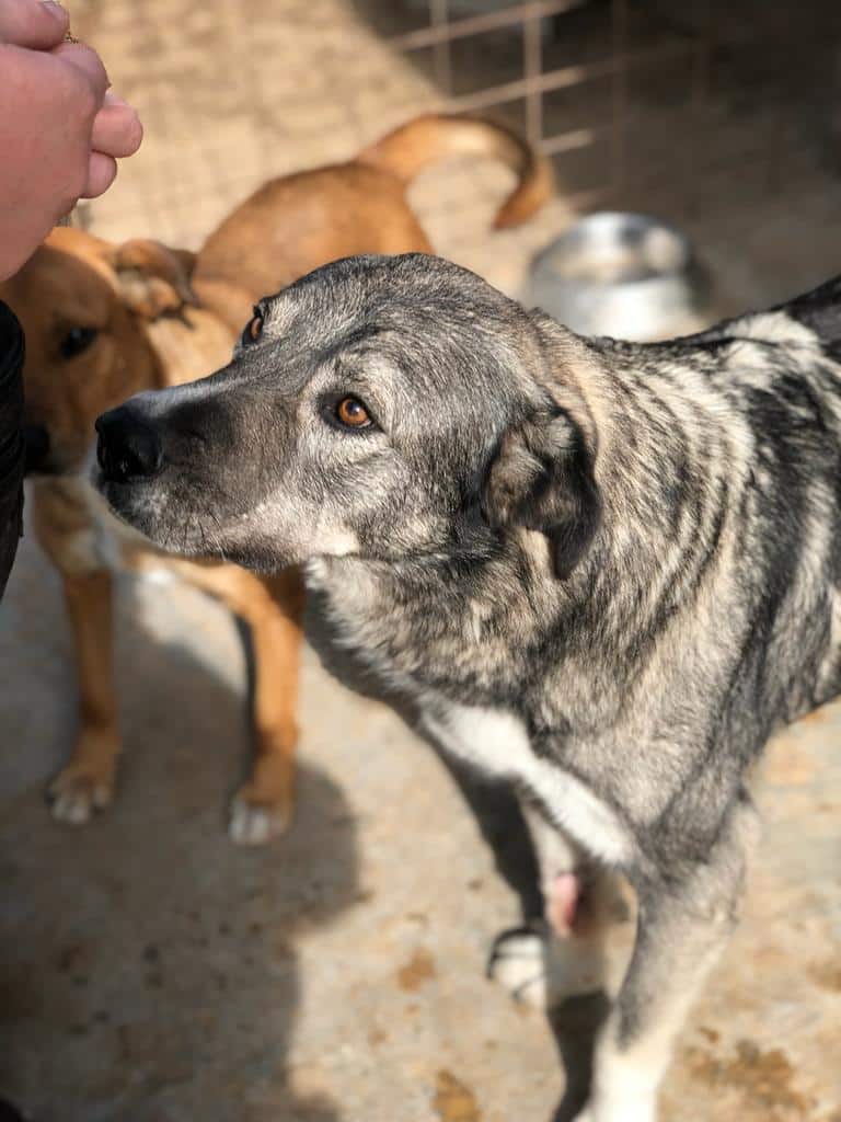 Update 10/23: Filip zeigte sich wieder sehr neugierig und kam auch bis zu uns ran. Letzter Schritt des Vertrauens fehlt weiterhin. Auffällig ist seine nicht heilen wollende Wunde am Bein. Das ist in den Griff zu kriegen wäre auch in Deutschland sehr schwer. Ihm das Vorderbein bei dieser Größe bzw. Gewicht abzunehmen, müsste auch gut zusammen mit Tierärzten überlegt werden. Aber erster Schritt wäre zu versuchen, die Wunde doch zu schließen. Im Shelter keine Chance, dazu bedarf es täglicher Betreuung.