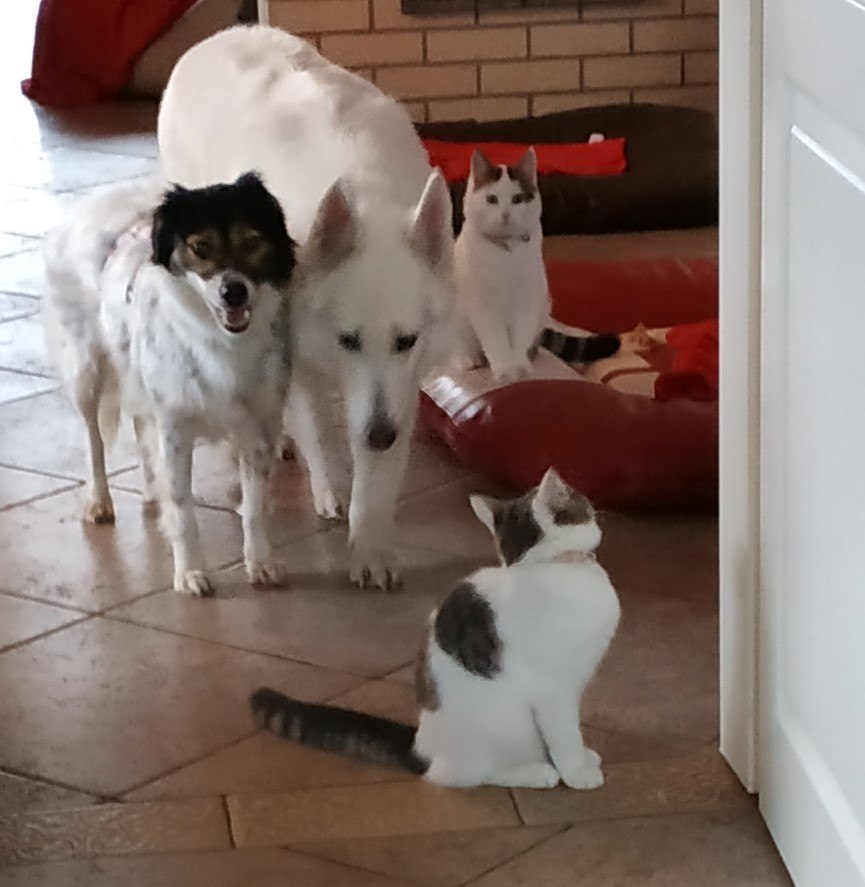 Final musste über zwei Jahre im shelter ausharren; nun ist ihre Chance gekommen und sie ergreift sie frohen Mutes. Sie ist sehr vorsichtig und braucht ein Weilchen, um zu vertrauen, dass Mensch es gut mit ihr meint. Leckerchen sind dabei sehr hilfreich und lassen anfängliches Zögern rasch verschwinden. Sie lebt hier in einem Hündinnen-Rudel und mit entspannten Katzen zusammen und zeigt sich als sehr friedliche und absolut aggressionslose Hündin. Sie scheint keinen Jagdtrieb zu haben, ist stubenrein und kann eine angemessene Zeit alleine bleiben. Vermutlich kann sie bellen; gehört haben wir es derzeit noch nicht Sie mag bei uns sein; hat schnell erkannt, dass ein warmes Körbchen weich und angenehm ist und dass das Futter regelmäßig kommt und für alle reicht. Autofahren bzw. eigentlich nur den Weg dorthin mag sie nicht sonderlich, macht es dann aber ohne Schwierigkeiten und freut sich, wenn sie wieder aussteigen kann. Nach anfänglichen Schwierigkeiten klappt nun auch das Gassigehen und die tägliche Bewegung tut ihrer Figur sichtlich gut. Mittlerweile kommt sie im Haus auch von alleine zum Kuscheln an; besonders berührend sind hier die Momente morgens nach dem Aufwachen, wenn sie merkt, dass noch immer alles gut und warm und sicher ist. Dann streckt sie einem das Bäuchlein entgegen und genießt voller Vertrauen die Streicheleinheiten. Ein bisschen Erfahrung sollte man schon mitbringen; Final ist kein „Selbstgänger“; hat sie einen jedoch als ungefährlich eingestuft, fängt Vertrauen an. Wir wünschen uns für sie eine liebevolle Familie mit Zeit und Verständnis. Ein eingezäunter Garten und ein Hundekumpel wären toll; bei ausreichend Kontakt zu Artgenossen würde sie aber sicherlich auch mit ihrem Menschen alleine glücklich werden und eine dankbare Überall-Hin-Begleitung abgeben. Bei Interesse stellt auch Ihr Euch bitte kurz vor, Dankeschön. Weitere Infos und Kontakt: ——