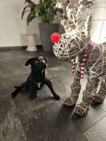 Die kleine Finia ist ein Sonnenschein! Seit Anfang Dezember 2024 ist Finia auf Pflegestelle in Deutschland und hat alle Herzen im Sturm erobert. Welpentypisch verspielt entdeckt sie ihre neue Welt und hat dabei allerlei Babyquatsch im Kopf.