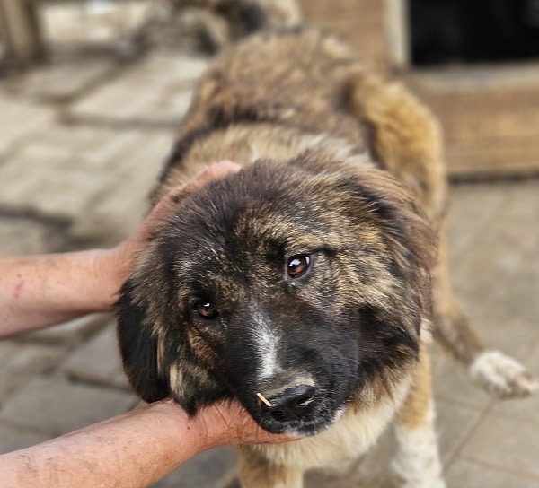 Die freundliche FINJA begrüßte uns freundlich, als wir den Kennel betraten. Sie wartete geduldig ab, bis wir uns ihr zuwandten. FINJA freute sich über die Aufmerksamkeit, nahm gerne unsere Leckerchen und ließ sich streicheln. Sie sprang dafür sogar einige Male hoch. Sie hat ein unrundes Gangbild und läuft recht staksig mit den Hinterbeinen. Wir hatten auch manchmal das Gefühl, dass wenn wir uns weiter entfernten, dass sie Probleme mit den Augen hat. Eine sehr nette Hündin, die mit den anderen Hunden in ihrem Kennel verträglich ist.