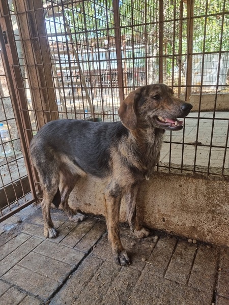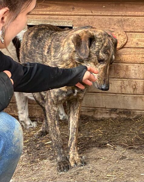 Unser FINJAS hofft bereits seit 2 langen Jahren hinter Gitterstäben auf sein Glück und musste im Shelter erwachsen werden – von einer unbeschwerten Kindheit konnte er nur träumen… FINJAS ist zwar zu einem wunderschönen jungen Rüden herangewachsen, doch der fehlende Menschenkontakt hat deutliche Spuren hinterlassen. Bei unserem Besuch war er einer der Neugierigsten, kam immer wieder bis zur Hand, schnupperte freundlich und nahm gern unsere Leckerlie. Doch sobald wir auf FINJAS zugingen, wich er zurück und suchte Schutz in der Hütte. Unsere zaghaften Berührungen lösten sichtliches Unbehagen bei dem hübschen Bub aus, er wäre vermutlich gern geflüchtet, blieb aber stets defensiv. Diese intensive Nähe ist für FINJAS einfach fremd geworden und wir wünschen uns so sehr, dass er bei lieben, erfahrenen Menschen endlich lernen darf, dass Nähe auch schön sein kann. Ein aufgeschlossener und freundlicher Ersthund würde ihm die Umstellung sicher erleichtern.