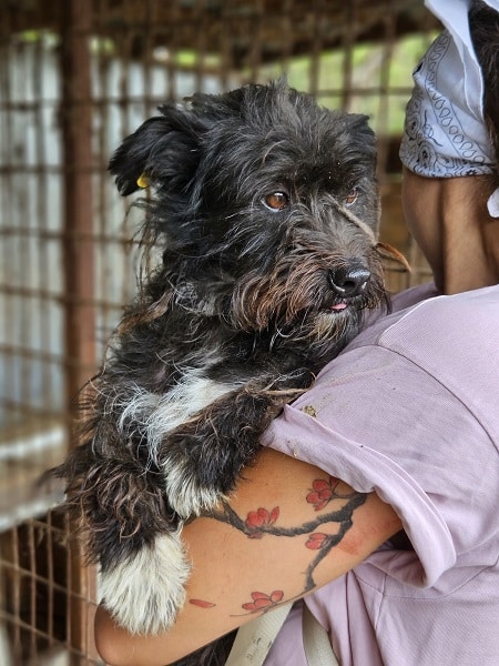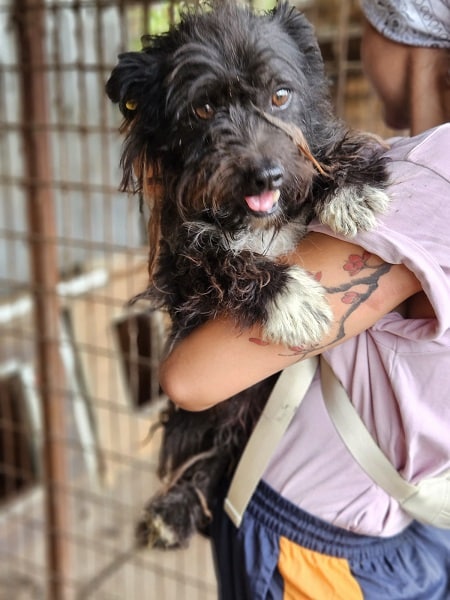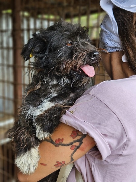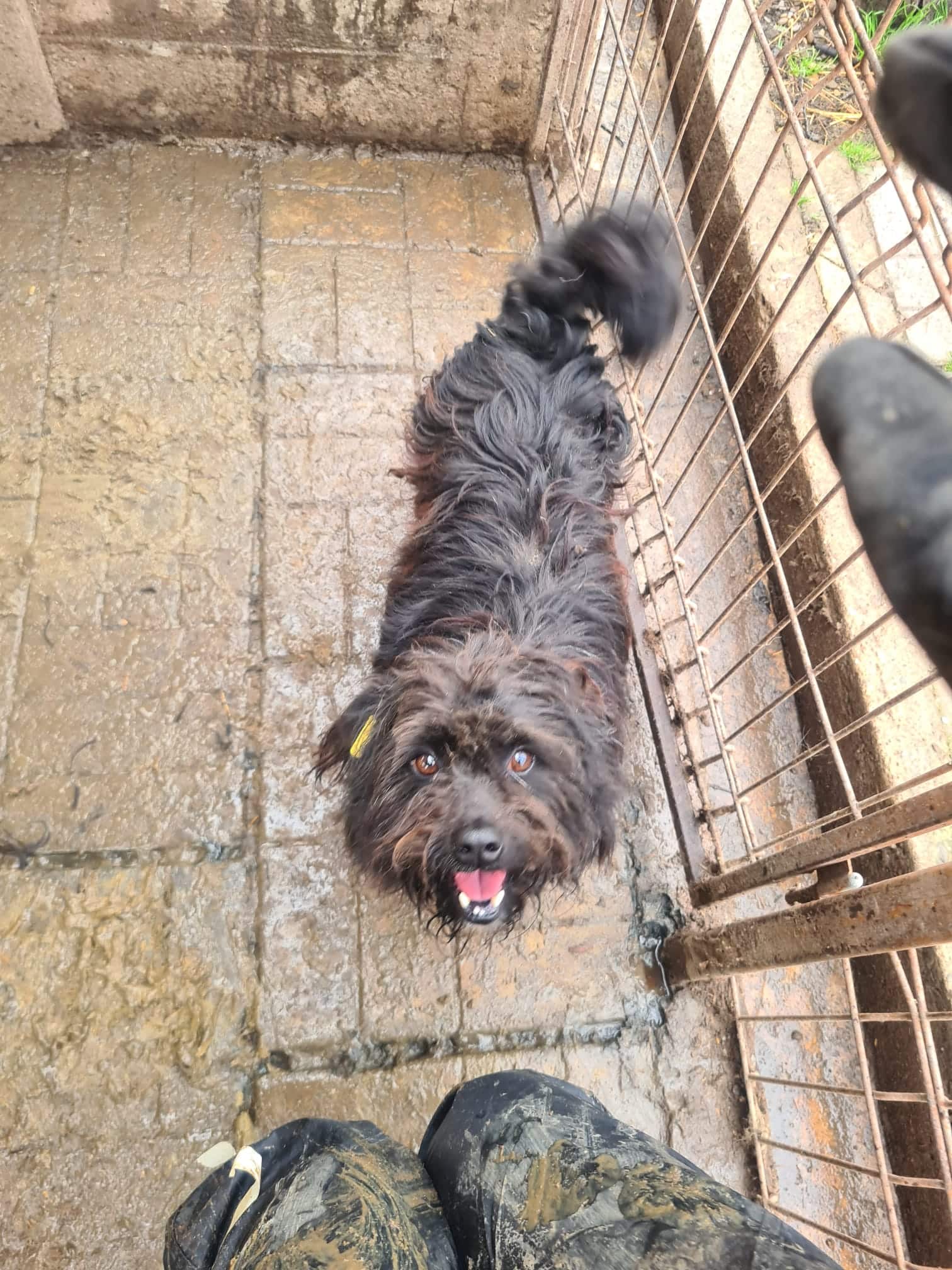 FINLEY freute sich riesig, als wir seinen Kennel betraten. Er war sofort bei uns und ließ sich gerne streicheln. Er zeigte sich sehr nett. FINLEY ist ziemlich verfilzt. Die anderen Hunden in seinem Kennel ließen ihn in Ruhe seine Streicheleinheiten genießen und so konnten wir keine Interaktion beobachten.