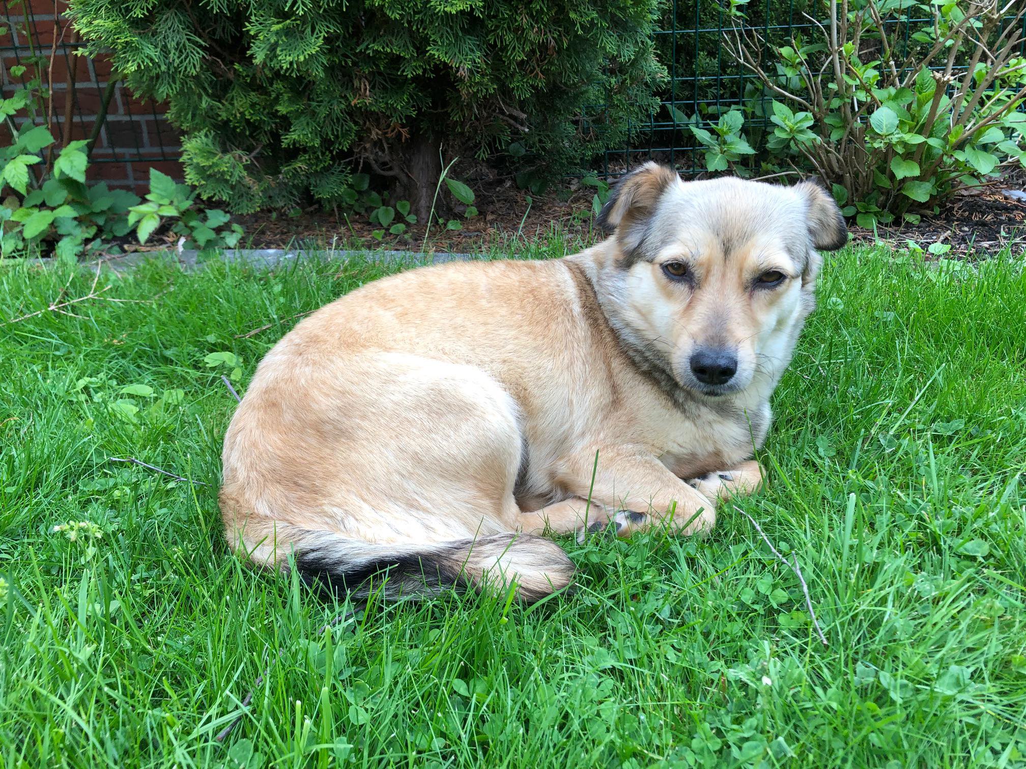 Toben im Garten ist super, spazierengehen macht sie gerne, mit ihren kurzen Beinen möchte sie keine langen Wanderungen machen, aber faul rumliegen möchte sie auch nicht den ganzen Tag. Der Garten ist ihr absoluter Lieblingsort.