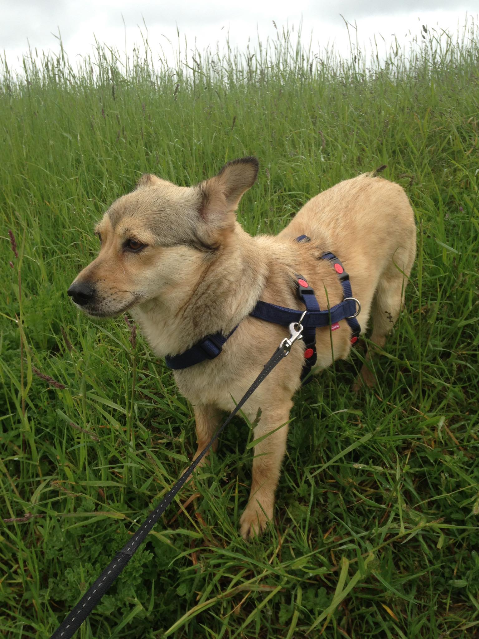 Sie versteht sich bisher mit allen Hunden, ist sehr aufgeschlossen und neugierig.