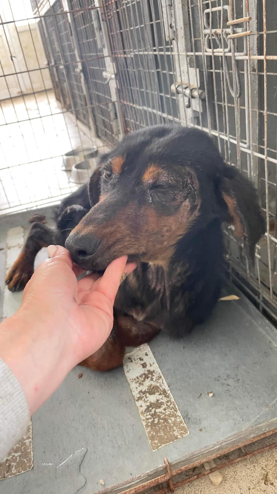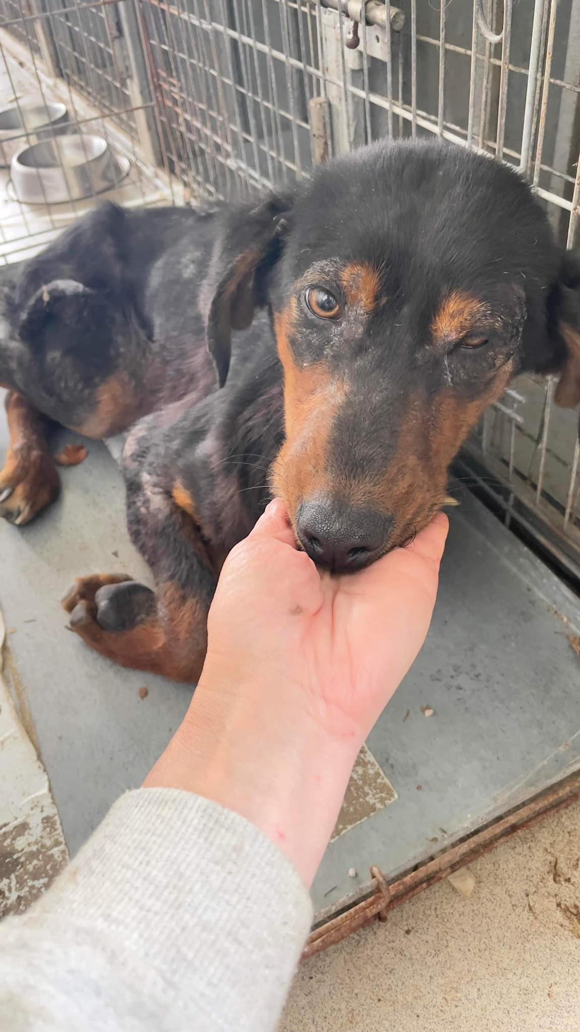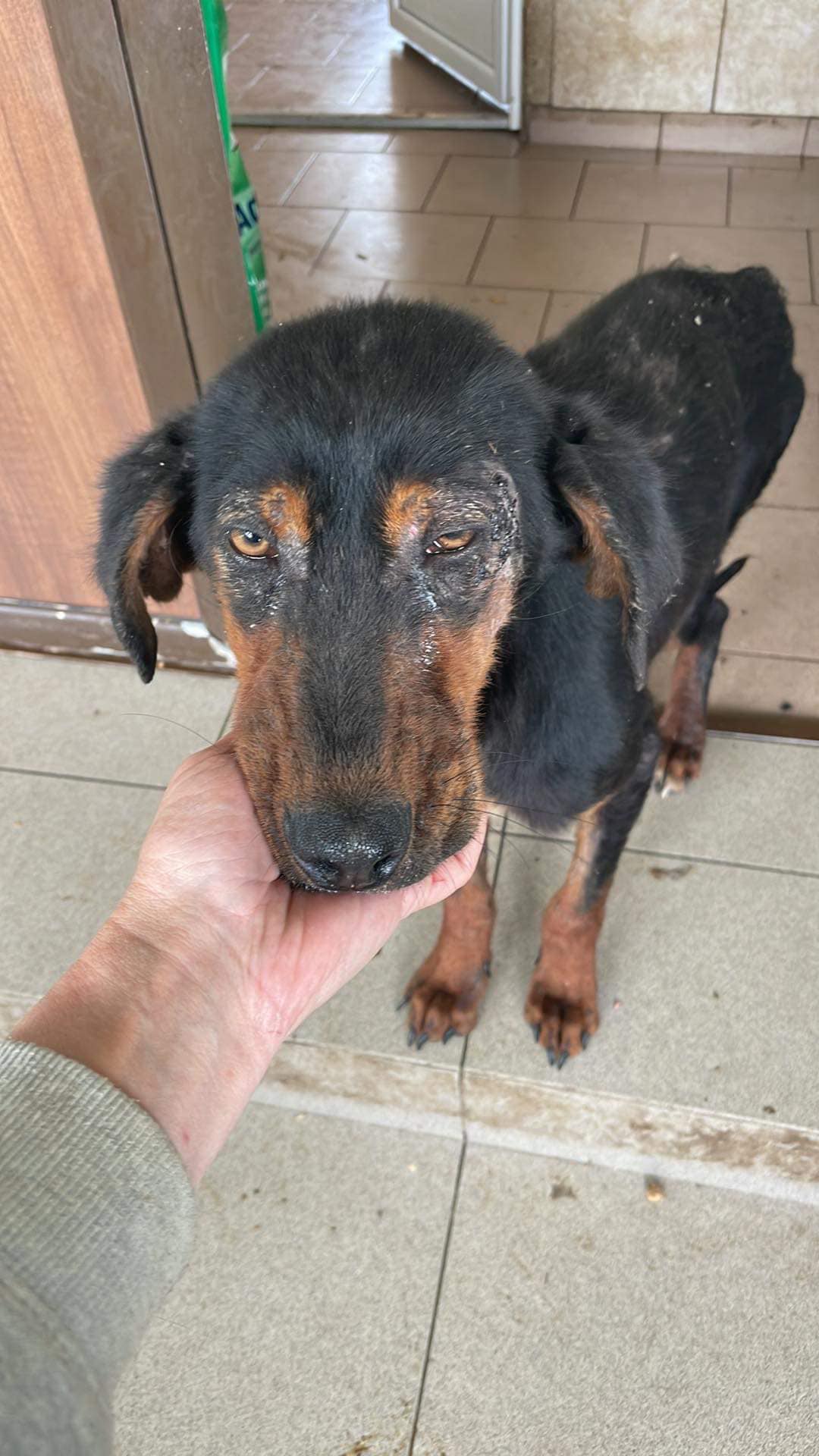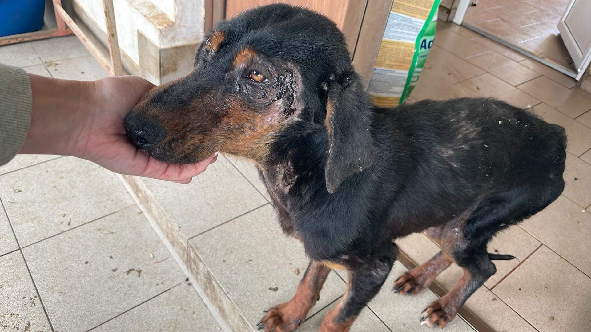 klapperdürr, offene Wunden und nässende Stellen (05/2022); Jagdhund-Mix