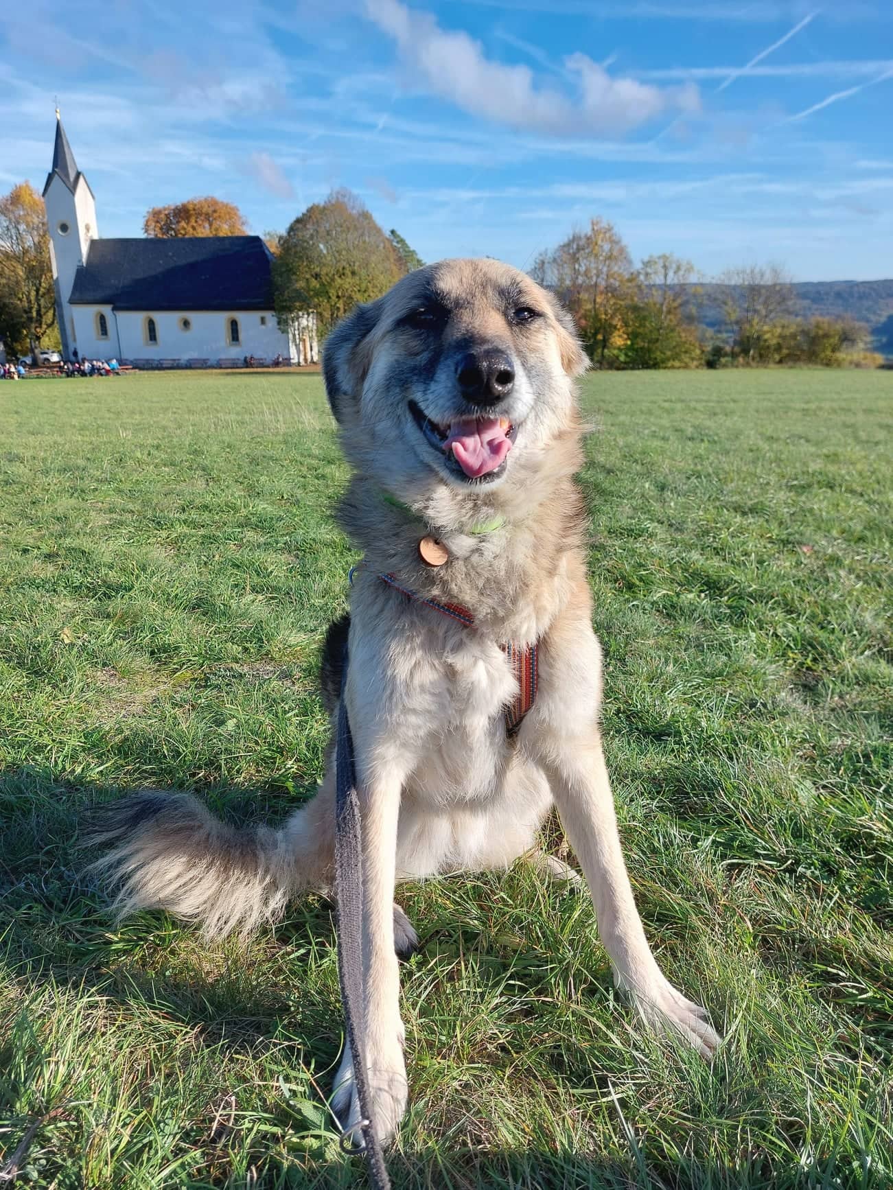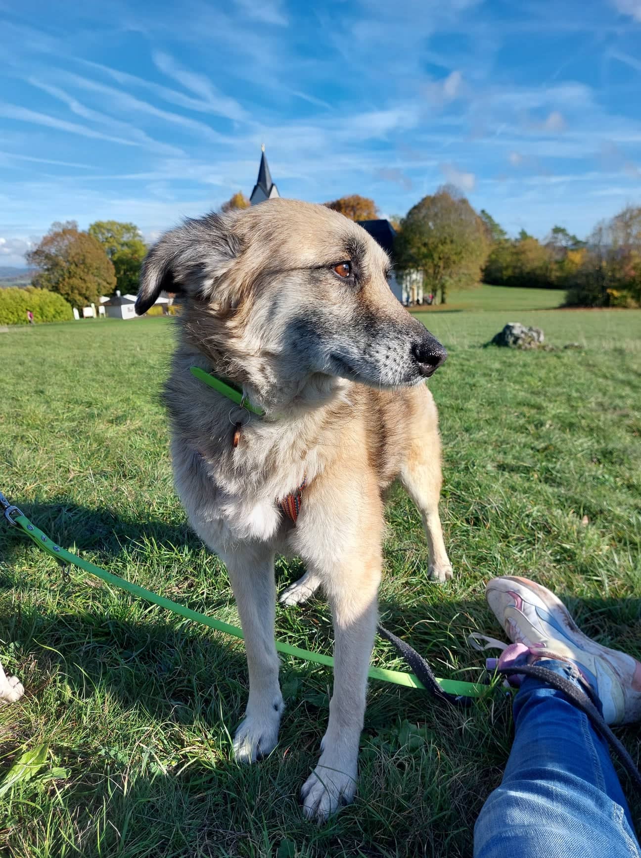 Sie zeigt sich absolut verträglich mit allen Hunden und sollte im Idealfall Zweithund werden, da die vorhandenen Hunde ihr Sicherheit geben.