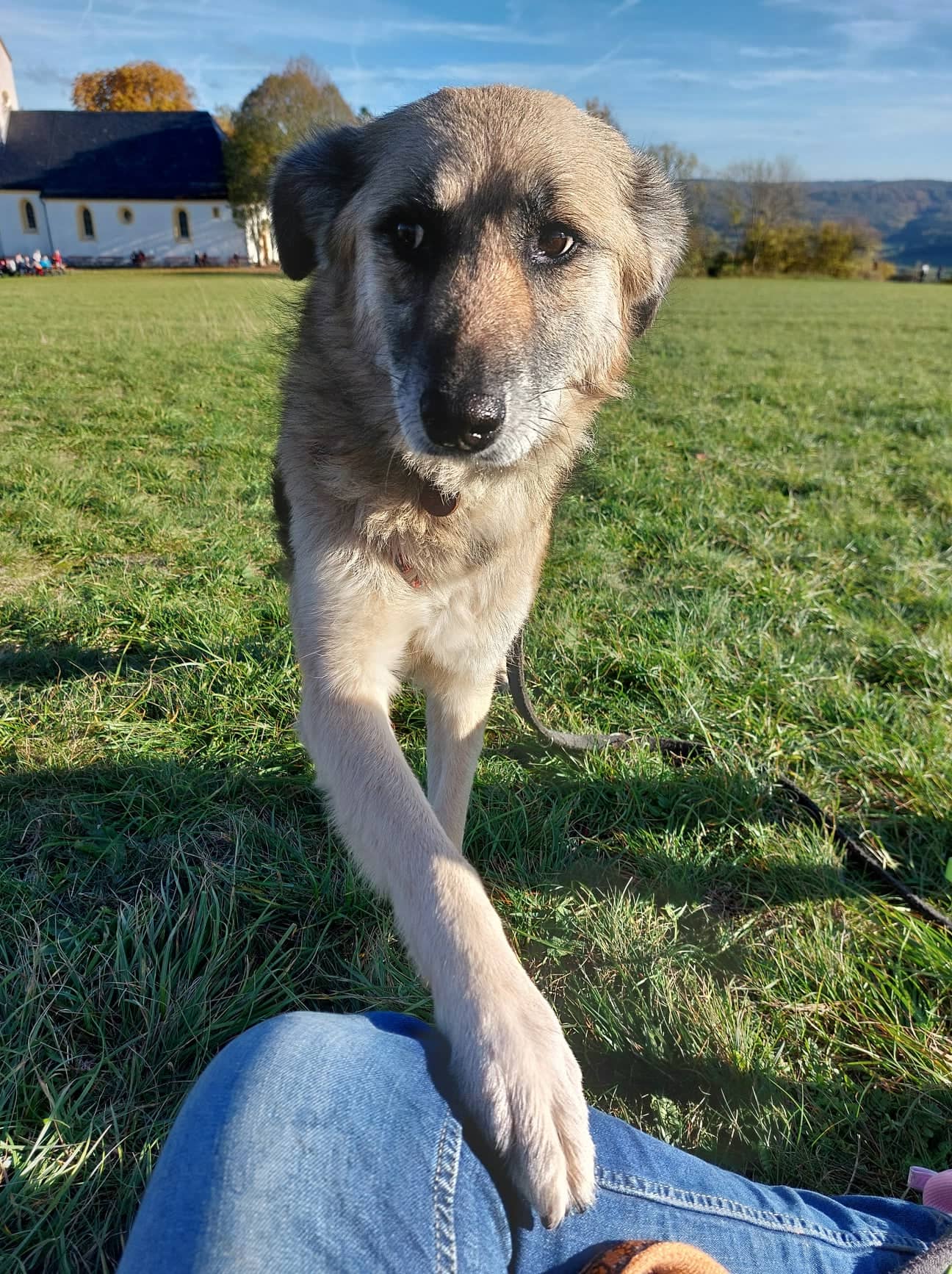 Auf ihrer Pflegestelle wird an ihrer Unsicherheit gearbeitet, aber derzeit kommt sie nur für erfahrene Menschen infrage, die damit umzugehen wissen.