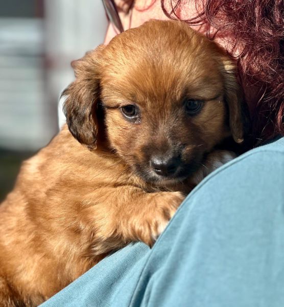 Dieser süße Rüde sitzt mit seiner Mutter Blix und seiner Schwester im Shelter. Er hat noch einen Adoptivbruder dazu bekommen. So wachsen sie zu dritt unter der Obhut von Blix auf. Durch den täglichen Kontakt zu Menschen sind sie sehr zutraulich. Wie ihre Mama wird auch er kleiner bleiben.