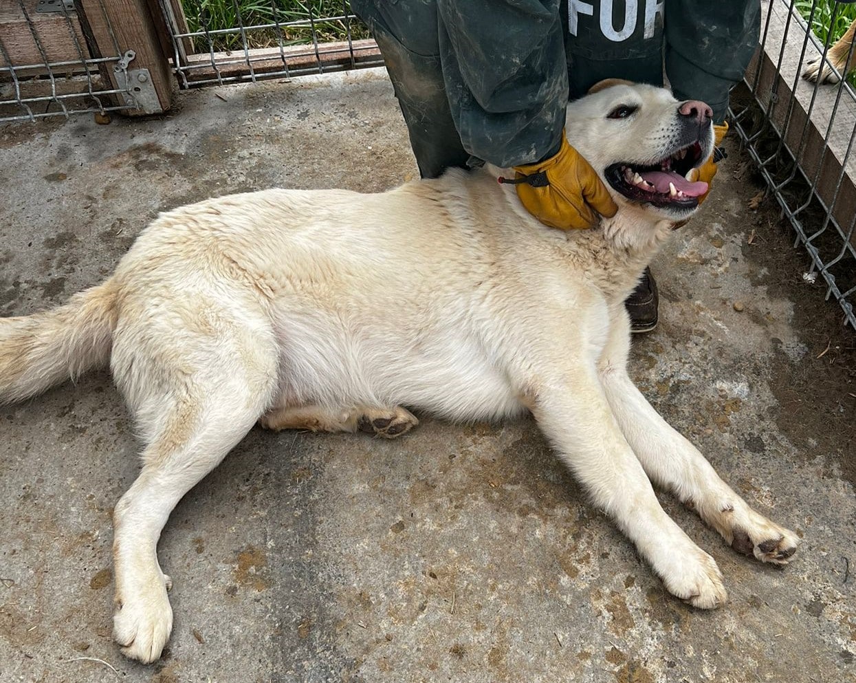 Update Ende 05/24: Wir bekamen heute ein großes SOS von unseren Mitarbeitern vor Ort, die sich um Flake Sorgen machen. Der einst so fröhliche Flake, kann dem harten Shelteralltag nicht mehr entgegensetzen. Einst freute er sich noch, wenn wir zu ihm kamen, er sah uns und kam sofort freudig zum Zaun. Jetzt bleibt er liegen, starrt vollkommen deprimiert, er weiß wir gehen ja gleich wieder. Er macht einen müden Eindruck, sieht schlecht aus. Keine Freude mehr bei ihm, es lohnt sich nicht mehr aufzustehen. Kein Mensch da, keine Gesellschaft. Nur ein kleiner Kennel wo ihn auch noch Ratten nerven. Flake gibt auf. Für so menschenbezogene Hunde, ist es besonders schwer, ihr Leben so zu fristen. Wir wissen, es ist nicht einfach für Hunde, die z.b. nicht mit jedem anderen Rüden klar kommen. Aber wir geben die Hoffnung nicht auf, denn mit Hündinnen versteht er sich.